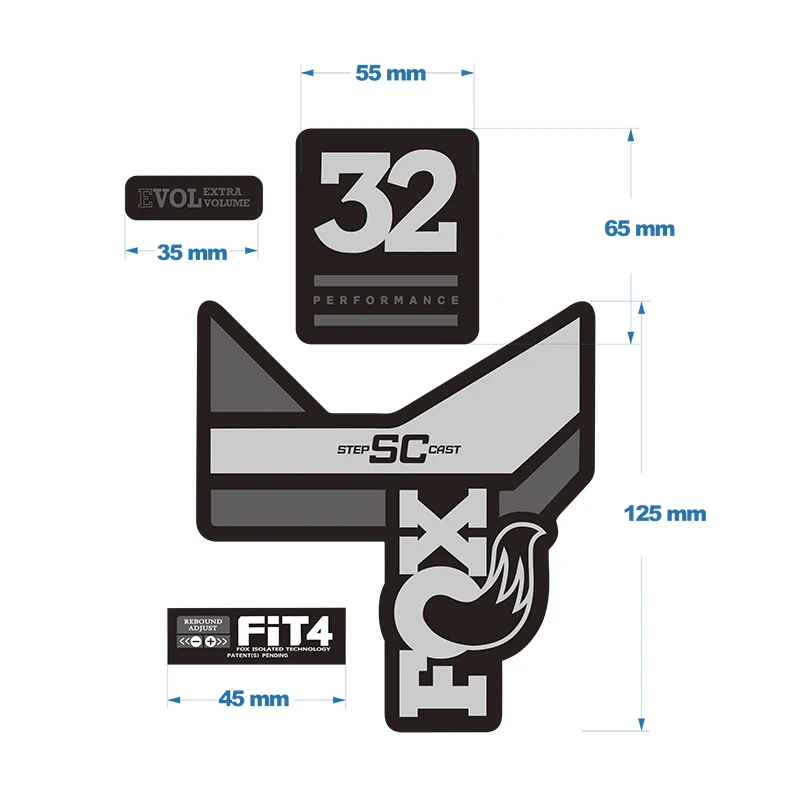 2020 год, завод fox32 float, наклейка на переднюю вилку, горный велосипед fox 32 SC, наклейка на переднюю вилку, велосипедная наклейка