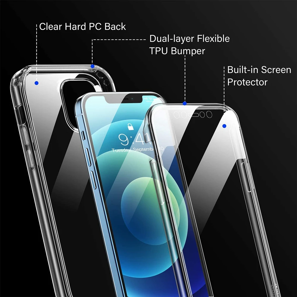 Полностью закрытый двойной прозрачный чехол для телефона iPhone 12 ...