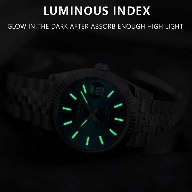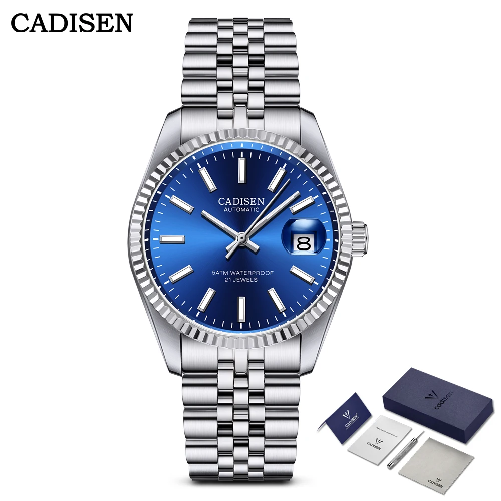 Мужские автоматические механические наручные часы Cadisen C8053, 38 мм, с подсветкой, Классические деловые часы