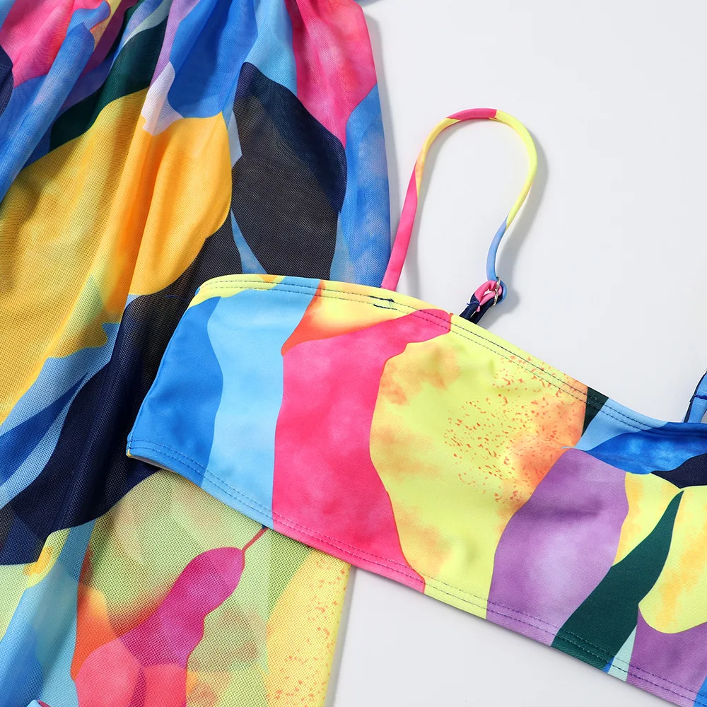 Женский комплект из 3 предметов, Пляжная блузка из сетчатой ткани, европейский и американский стиль, сексуальный весенний купальник