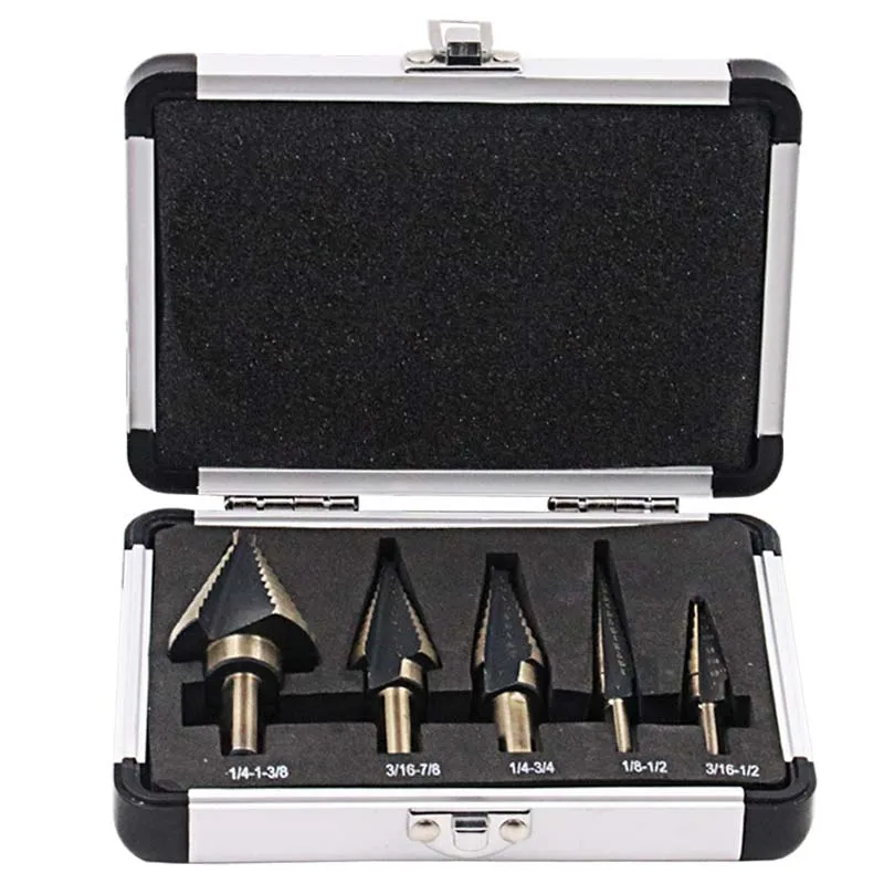 Новое поступление высокое качество 5 шт.компл. HSS Кобальт несколько отверстий 50 размеры Шаг сверло Набор w Алюминий чехол