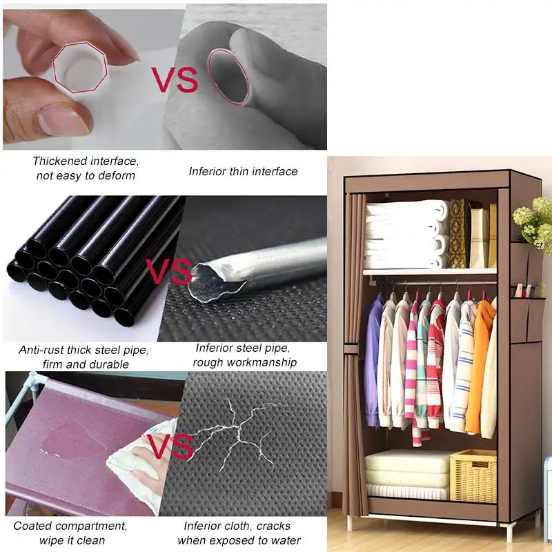 Посылка включает в себя:1x Простой гардеробХарактеристики:-Размер: 145x60x45см-Состояние на 100% абсолютно новый и высокое качество-Материал: Нетканая ткань, стальная труба, пластиковый соединитель-Цвет: темно-синий, кофейный, серебристо-серый, винно-красныйХарактеристика:-Хранение разделов для экономии места-Нижняя крышка для карт с высокой стопой находится далеко от земли, эффективно предотвращает попадание влаги и пыли и облегчает очистку-Высокая прочность, оригинальный материал, износостойкий, антиокислительный, прочный-Утолщенная Нетканая ткань, пыленепроницаемый дизайн, Высококачественная Нетканая ткань, влагостойкая и дышащая, без загрязнения-13 мм Высококачественная стальная труба, усиленная и утолщенная стальная труба, более сильная несущая способность-Утолщенная стальная труба, сильная несущая способность, утолщенный интерфейс, прочная и не легко деформируется-Мембранный отсек, протрите его-Утолщенный интерфейс, не легко деформируетсяПримечание:1. Допускается погрешность в 1-3 см из-за ручного измерения. Перед размещением заказа, пожалуйста, внимательно ознакомитесь со всеми условиями.2. Цвета могут отличаться, так как на дисплее разница, пожалуйста, поймите.