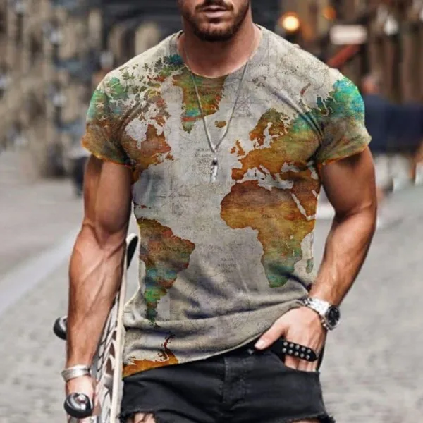 Повседневная футболка с принтом земли, дышащая и модная уличная футболка, лидер продаж, мужская летняя футболка в Европе и Америке