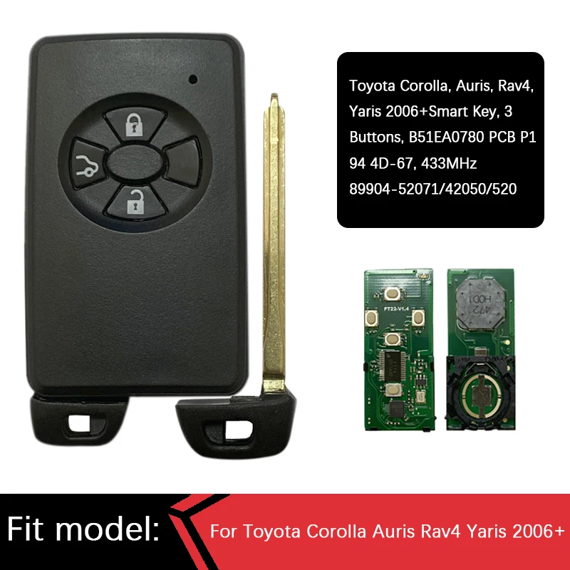 Сменный 3-кнопочный ключ CN007189 для Toyota Corolla Auris Rav4 Yaris 2006 + Smart Key B51EA 0780 PCB P1 94 4D-67 433 МГц 89904-52071