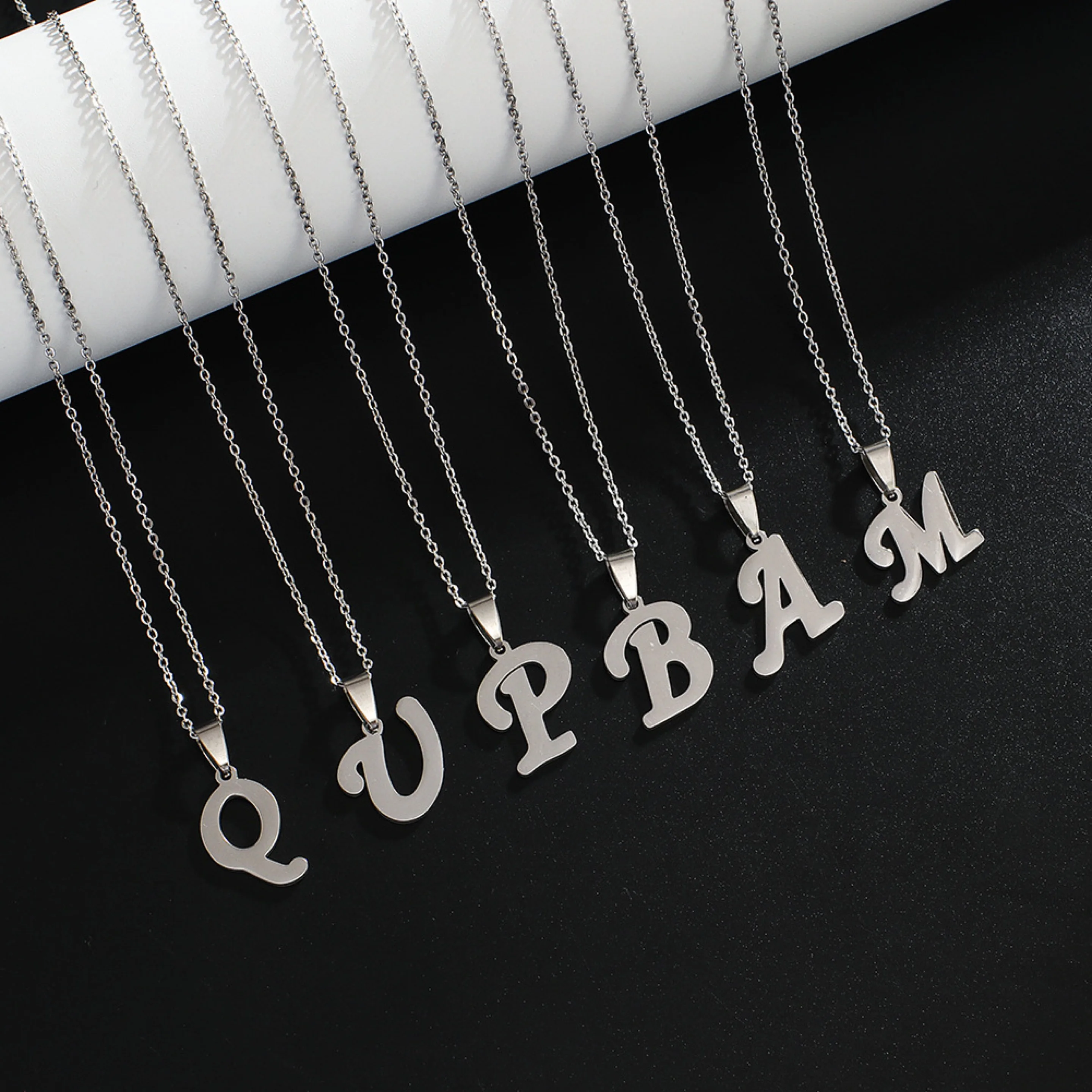 Ожерелье из нержавеющей стали, подвеска в виде букв дневного алфавита, цепочка, ожерелье для женщин, курсивные инициалы, мужское ожерелье, модные украшения