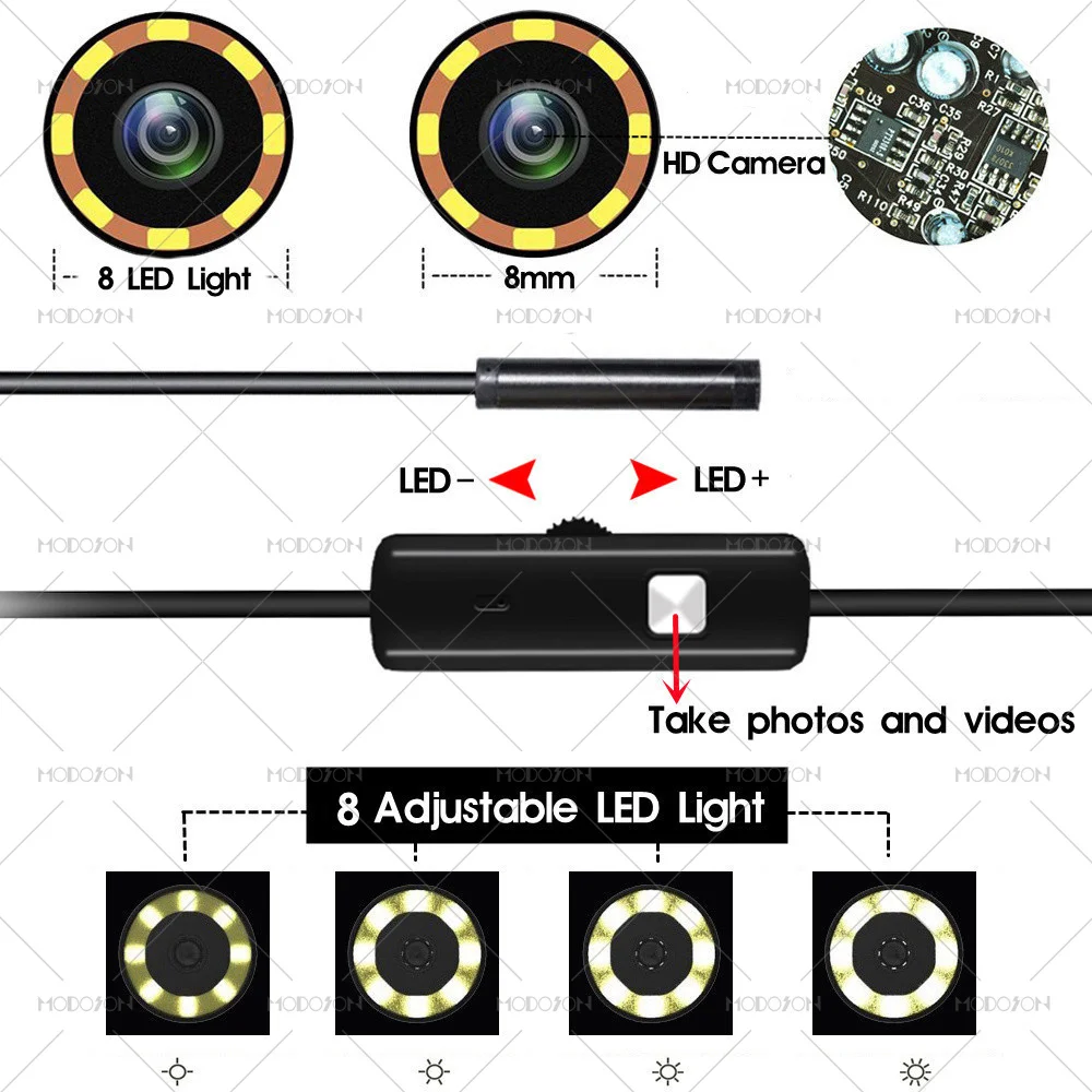 Эндоскоп с гибким кабелем, 8 мм, 5 млн. камер 1200P HD, OTG, Micro ...
