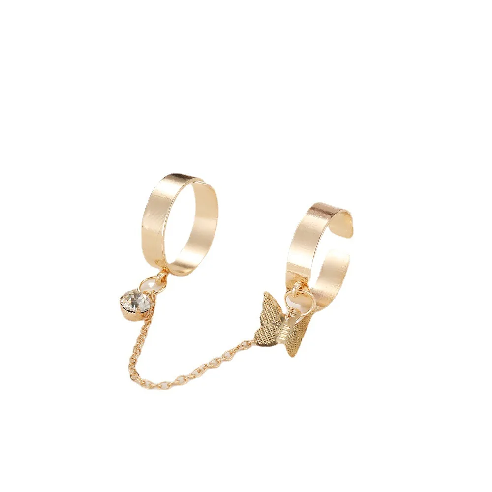 Личность Бабочка цепи кольца для женщин Винтаж блеск двойные кольца...