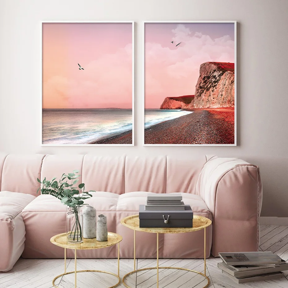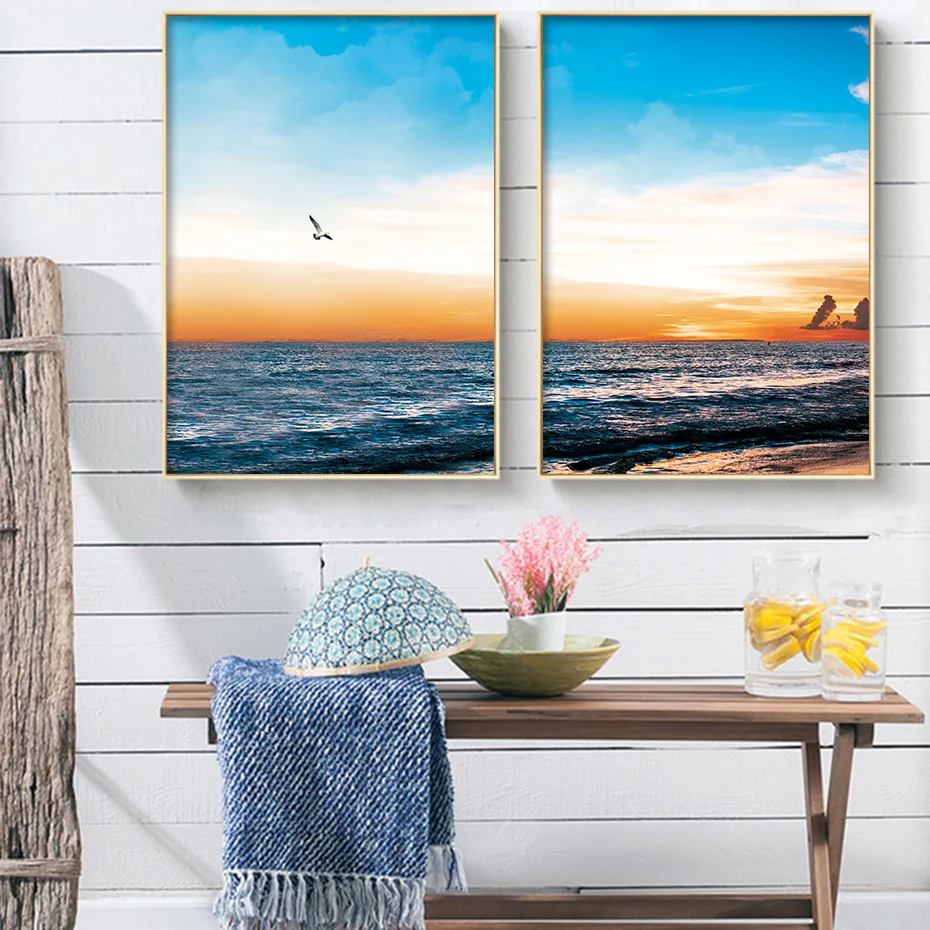 Настенная картина с изображением заката на пляже, Постер и принты на холсте в стиле прибрежной волны, Современная гостиная, спальня, морской пейзаж, домашний декор