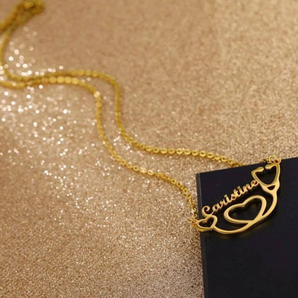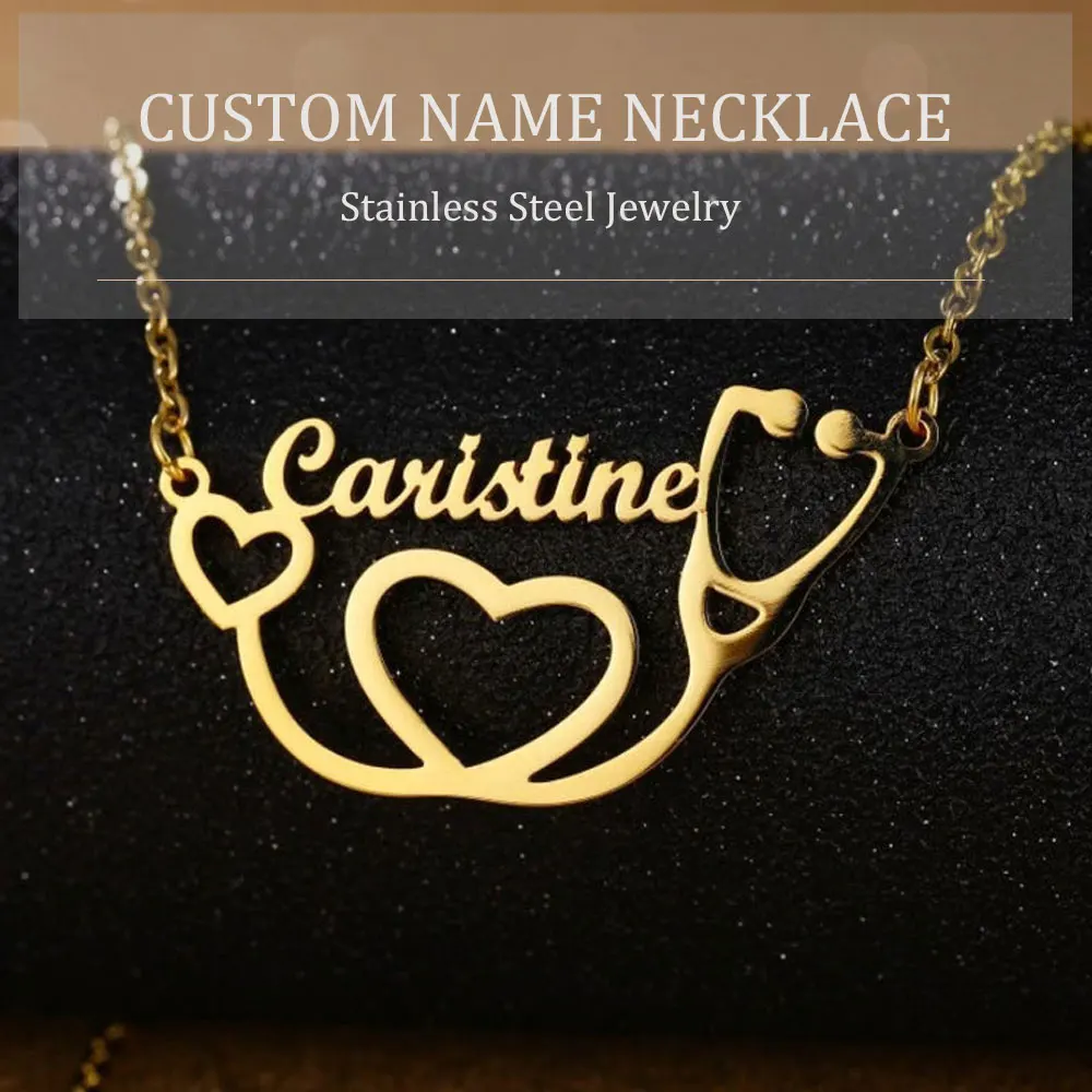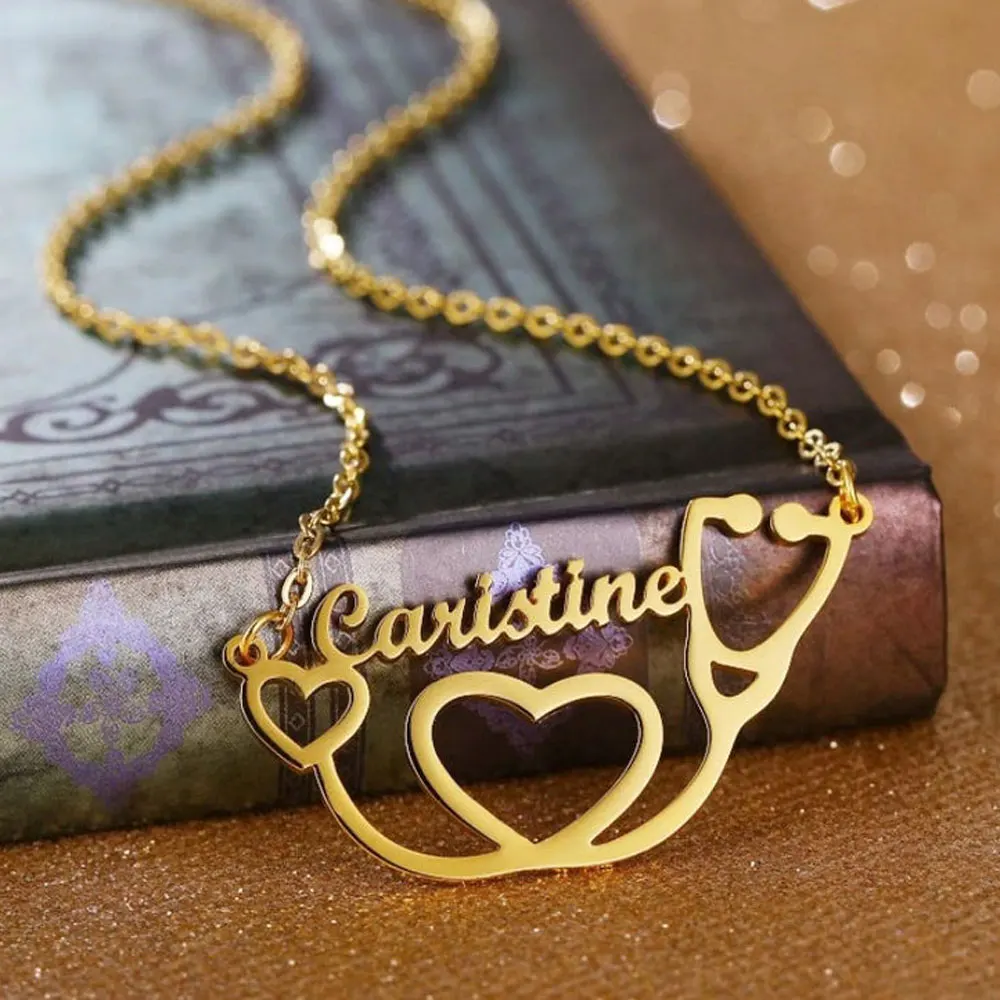 Ожерелье с курсивом и именем шрифта золотого цвета из нержавеющей с...