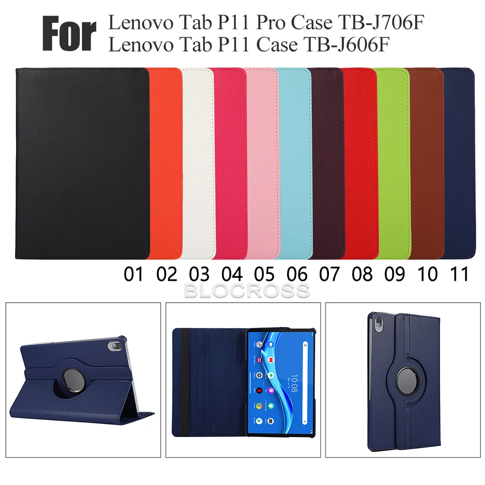 Для планшета Lenovo Tab P11 чехол для ноутбука MacBook 11 дюймов 2020 ТБ-J606F TB-J606X принципиально 360 градусов вращающийся кожаный смарт-чехол для планшета Lenovo Tab P11 крышка