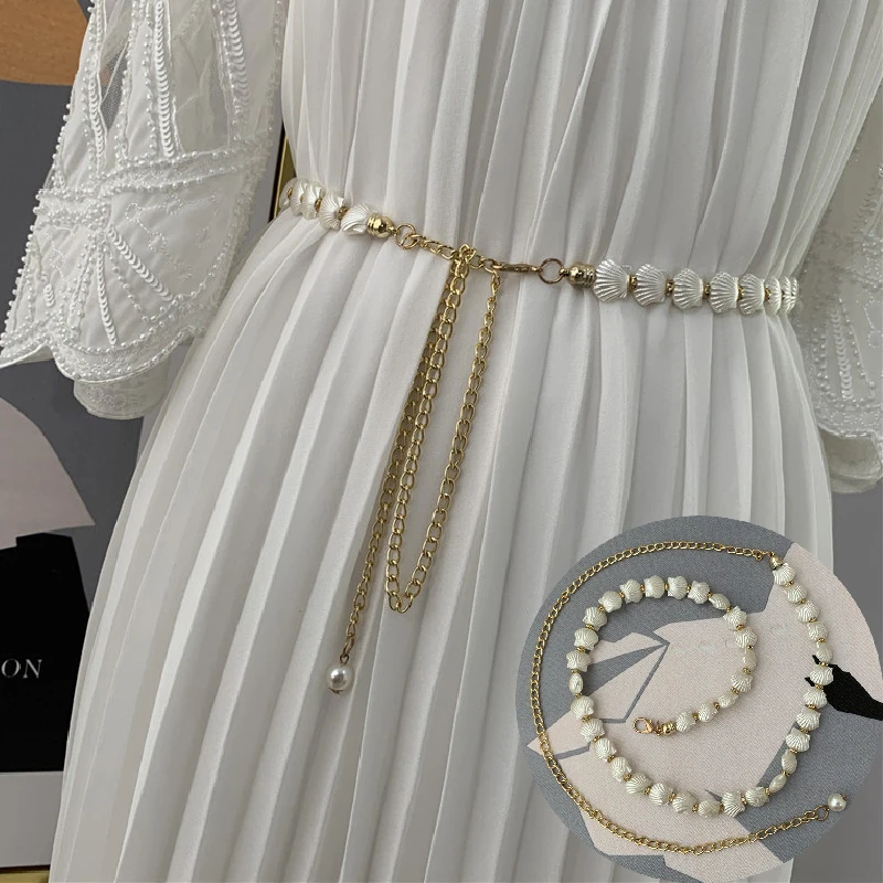 120 см в виде ракушки длинная цепь кисточкой корсетный пояс женский платье с поясом ремень класса люкс металлические цепи талии ремни аксессуары
