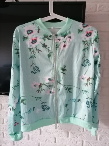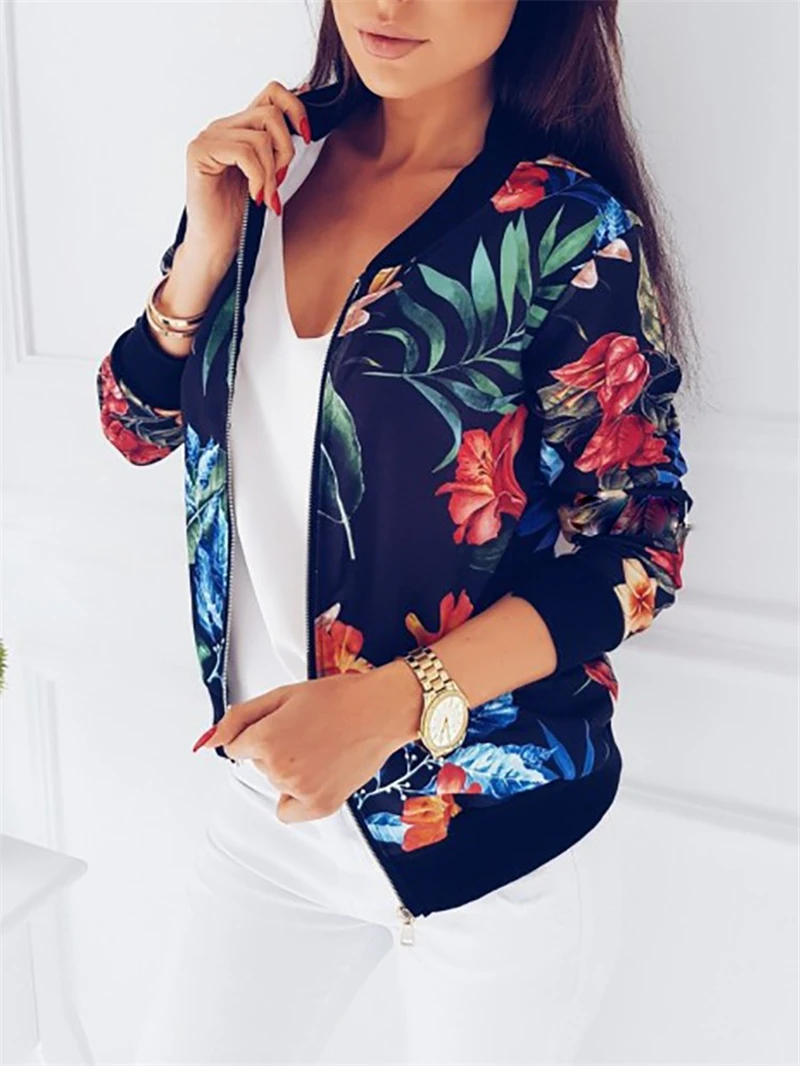Куртка-бомбер женская демисезонная на молнии, с цветочным принтом и длинными рукавами