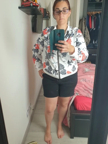 Цвет товара не соответствует действительности. На фото продавца основной цвет изделия ближе к тёмному и спокойный, а рисунок насыщенный, по факту оказалось все наоборот... Фон светло-бирюзовый, а лепестки цветов очень бледные, как будто выцвели. На спине из всего рисунка только 2 ярких цветка. С размером угадала, ношу 44-46, М полностью подошла. Посылка пришла очень быстро - за 11 дней в Свердловскую область. Открыла спор по несоответствию описанию, жду результат...