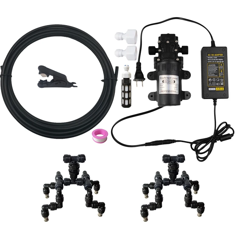 Цвет: как на фотографииДлина трубки: 10 метровРазмер трубки: 1/4''Материал трубки: PEТип соединения сопла: замок скольженияОтверстие сопла: 0,3 ммОсобенности: защита от капельИсточник питания: 110-220 В/50-60 ГцСпецификация насоса:Напряжение: 12 В постоянного токаМощность (макс.): 60 ВтДавление (макс.):0.8MpaПоток (макс.): 5л/минРазмер резьбы: 1/2 ''Мужская нитьСпецификация адаптера питанияВход: AC100-240V 50/60HzВыход: 12V/5AПодключение: Подключите