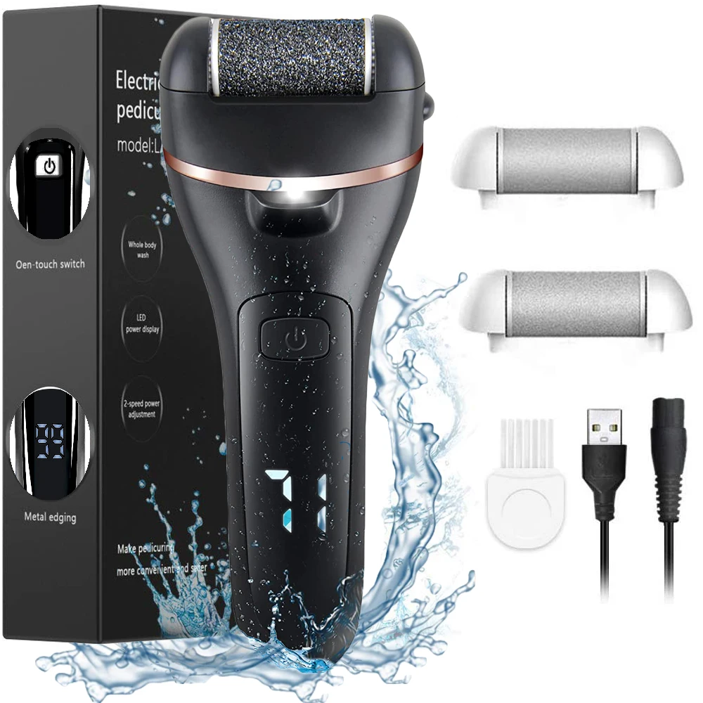 Сухой очиститель для ног с водонепроницаемым дизайном IPX7, можно промыть под проточной водой. Этот скребок для ног для удаления омертвевшей кожи обеспечивает идеальный уход за ногами, когда вы выходите из душа. Пожалуйста, высушите ноги перед использованием для достижения наилучших результатов. (Примечание: Не замачивайте его в воде в течение длительного времени.)Электрический удаления мозолей имеет 3 различных кварцевых песчаных роликовых головки. Грубая роликовая головка для удаления упрямой роговой омертвевшей кожи, средняя роликовая головка для удаления грубой омертвевшей кожи и тонкий ролик для ежедневного ухода за ногами. Электрический пилочный набор для ухода за ногами для отшелушивающего предотвращения, удаления треснувших пяток и удаления омертвевшей кожи. Вы можете ухаживать за ногами для своих детей, жен, мужей, нет необходимости ходить в магазин педикюра.