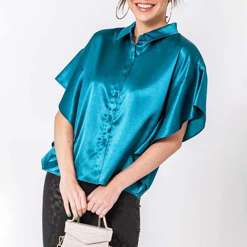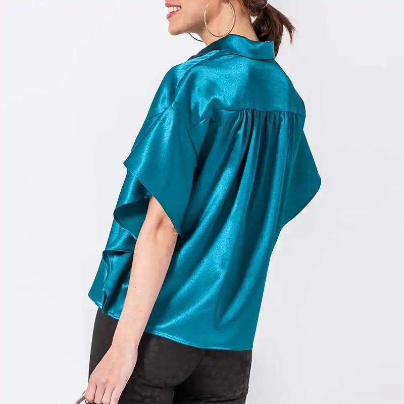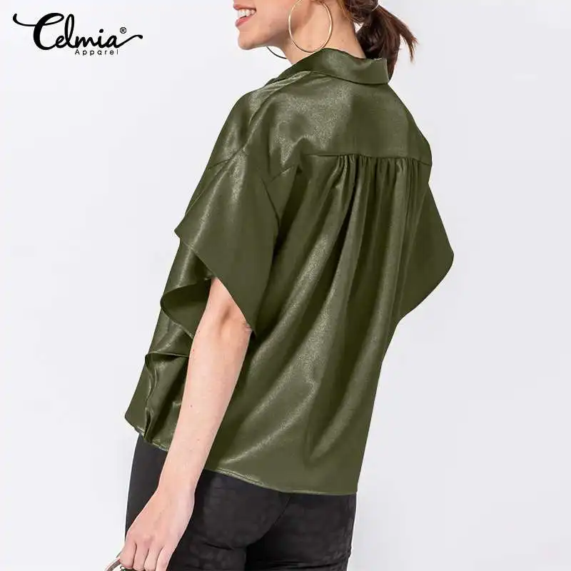 Стильные топы Celmia 2022, летние женские блузки с коротким рукавом, Элегантная атласная шелковая рубашка с оборками, повседневные свободные офисные блузки с отложным воротником
