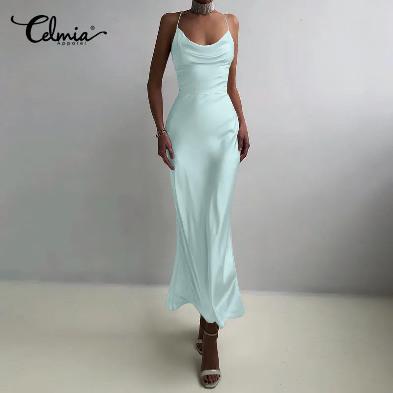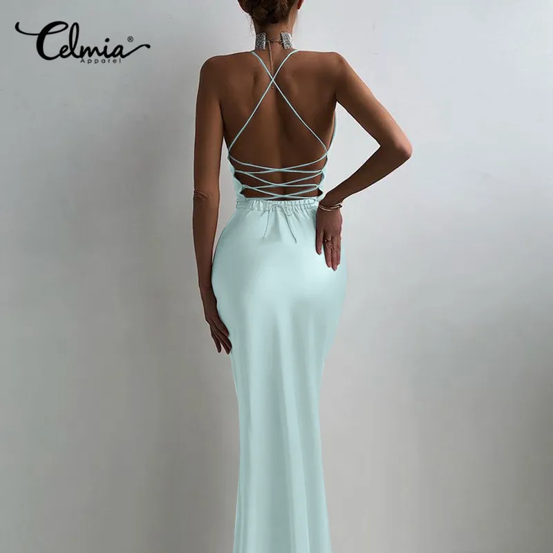 Celmia женское сексуальное длинное платье на бретелях-спагетти 2022 летнее Элегантное Атласное Вечернее Платье Макси Сарафан модные Клубные платья с открытой спиной