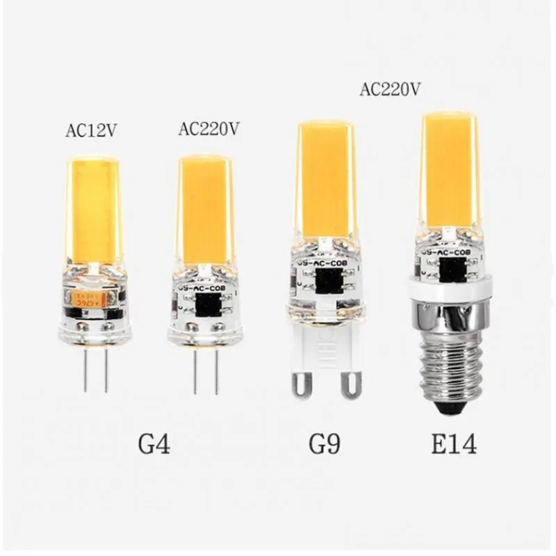 Гнездо: G4 G9 E14 Мощность: 3 Вт 6 Вт Напряжение: 220 В и 12 В Светодиодный чип-Модель: COB светодиодный Материал корпуса: силикон Угол луча: 360 градусов Срок службы: 50 000 часов Цветовая температура: теплый белый/холодный белый