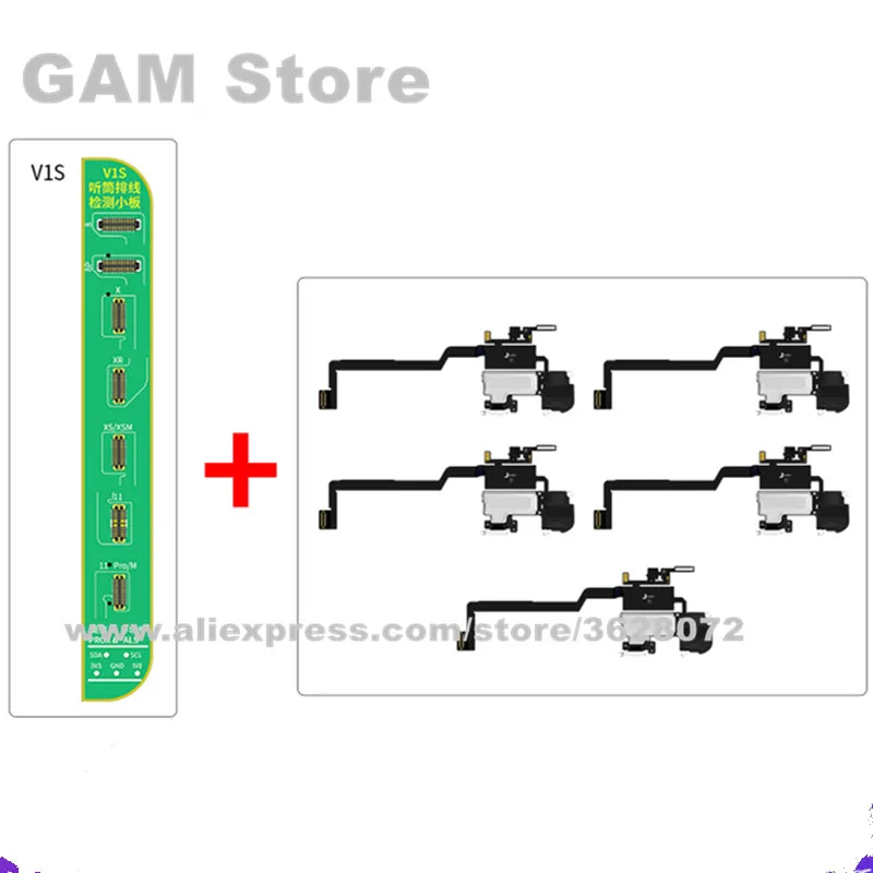 JC V1S приемник flex cable detection board работает с JC V1S host, он используется для обнаружения функции iPhone true tone, И ремонт iPhone Face ID и функции истинного тона без оригинального динамика наушника с гибким кабелем датчика.