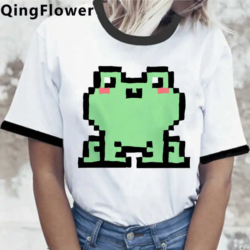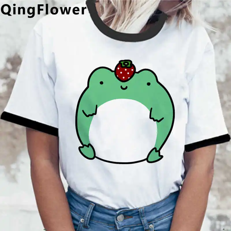 Футболка женская Kawaii с рисунком лягушки, одежда tumblr