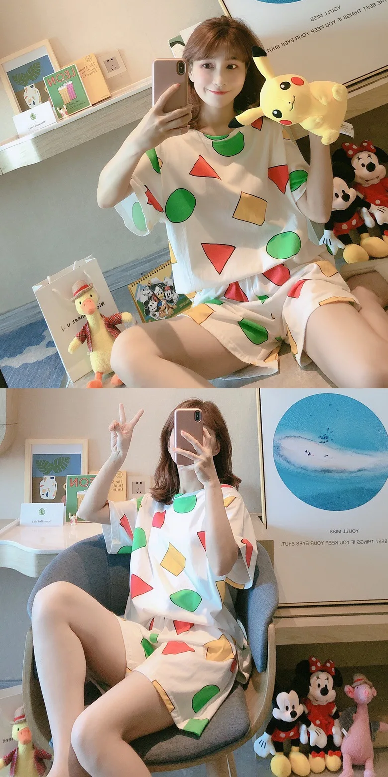 Пижама Sin Chan женские пижамные комплекты для женщин Летняя Пижама Sinchan одежда для сна костюмы с шортами Домашняя одежда 2021