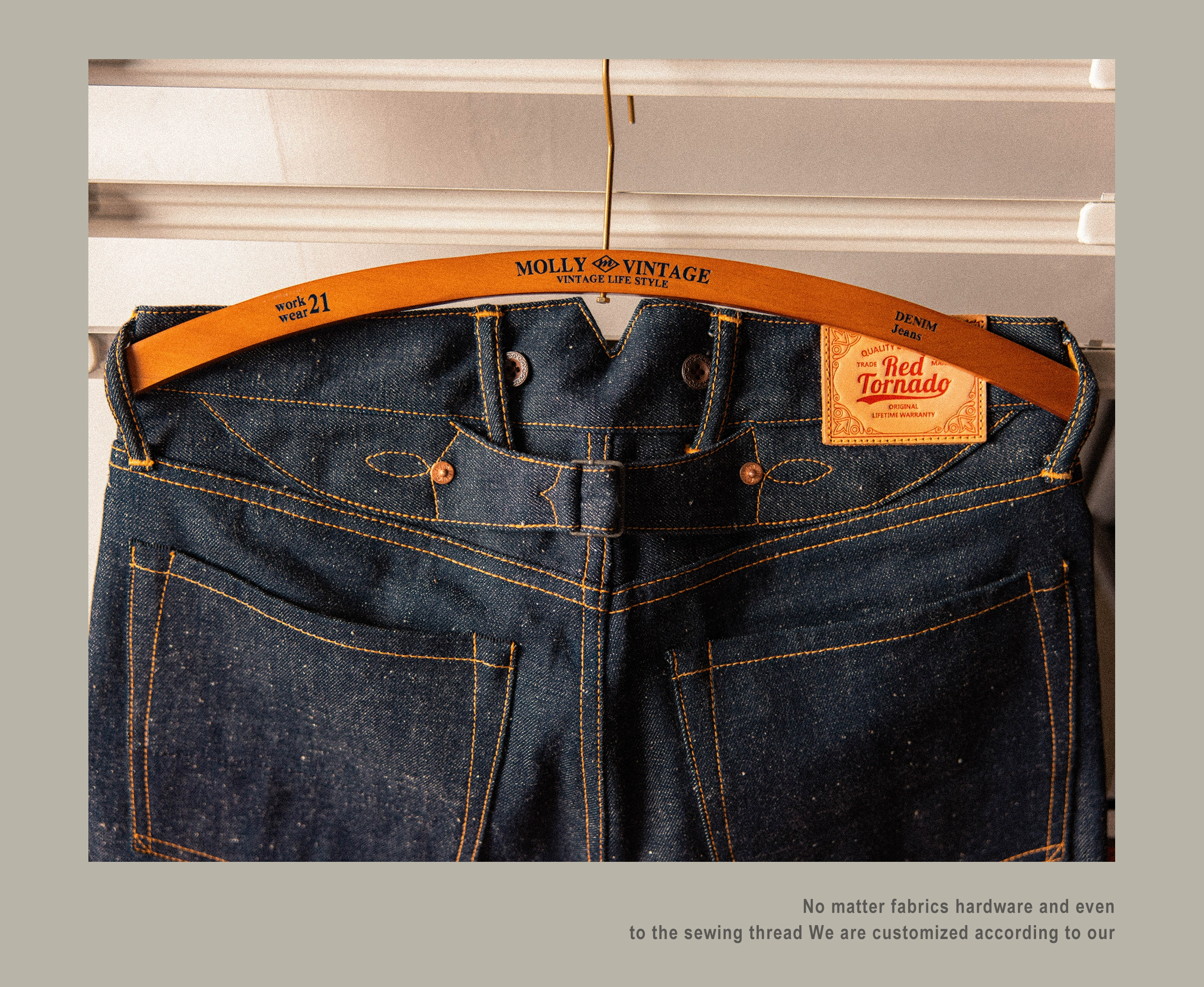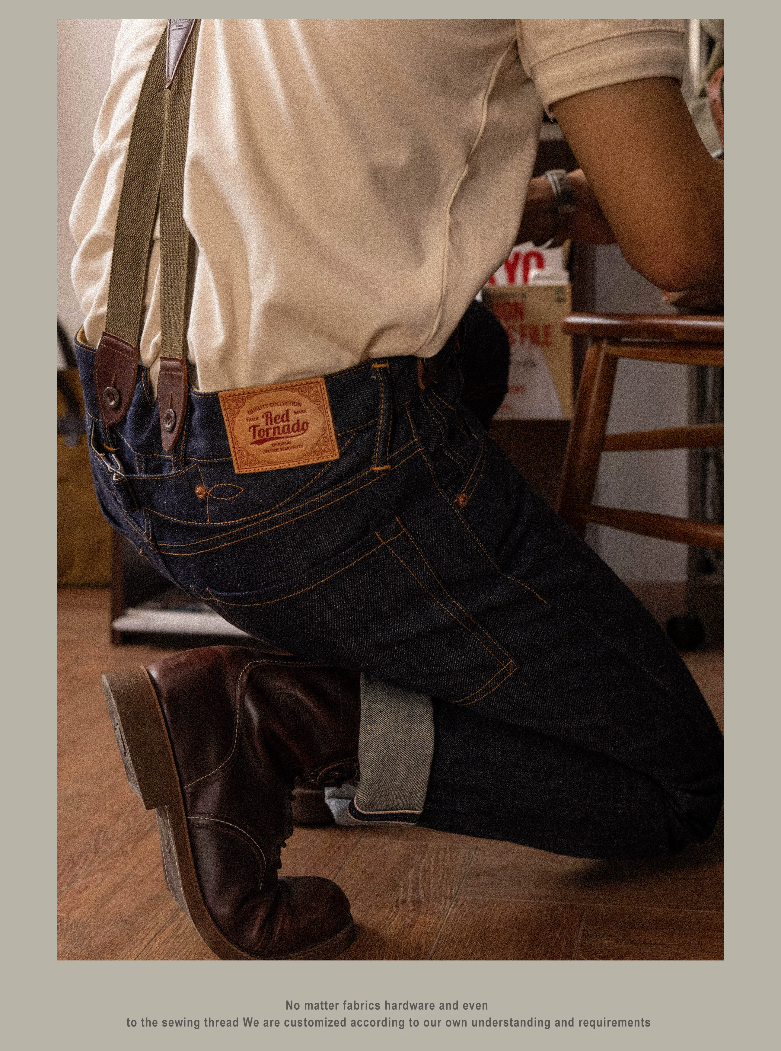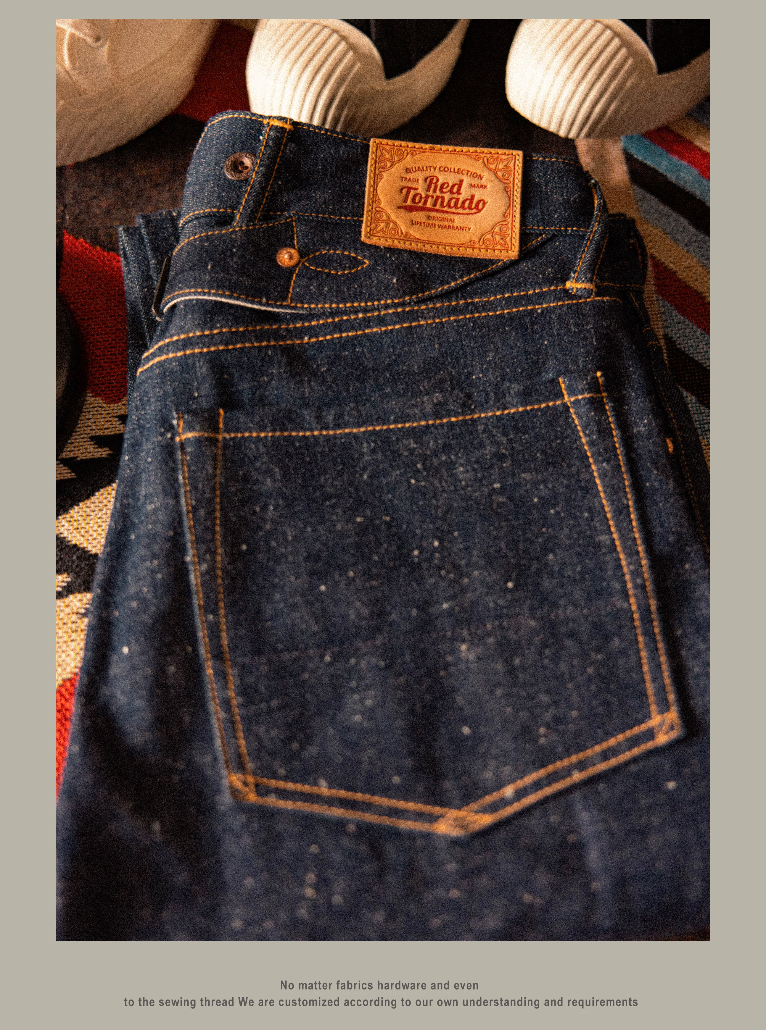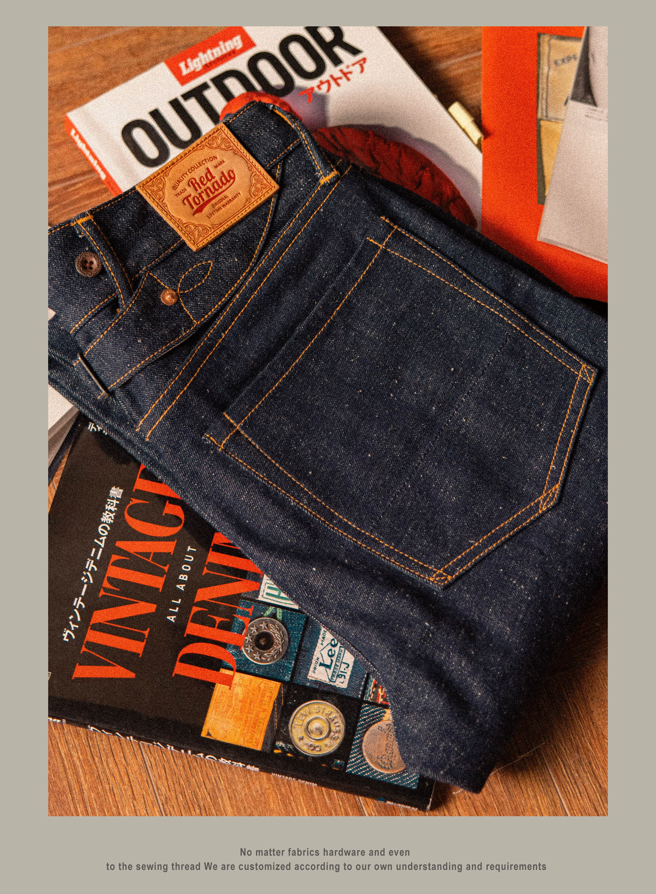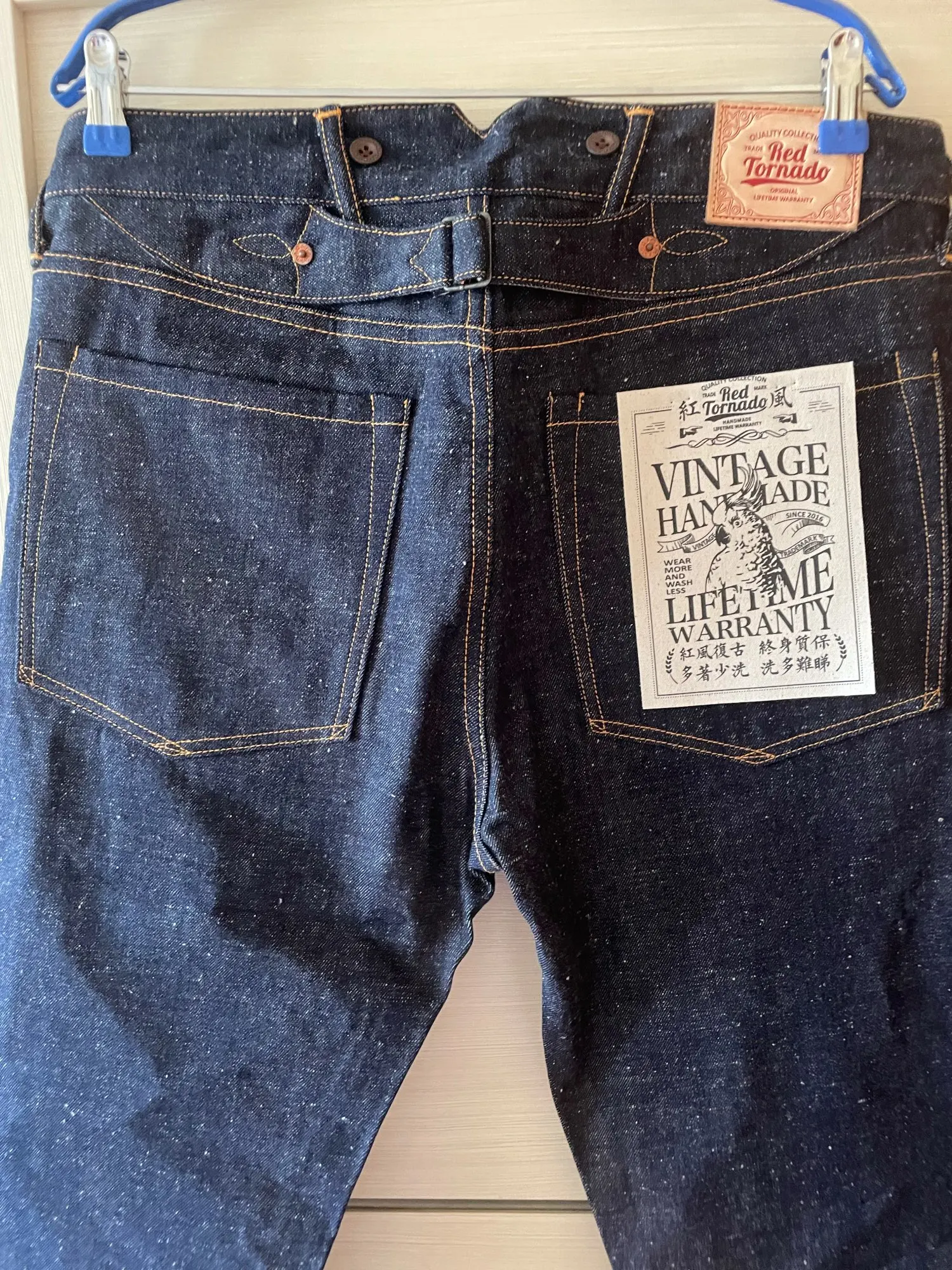 2000T-0002 прочтите описание! Красные необработанные джинсовые брюки Tornado, цвета индиго, необработанные джинсы с латунной пряжкой, 14 Унций