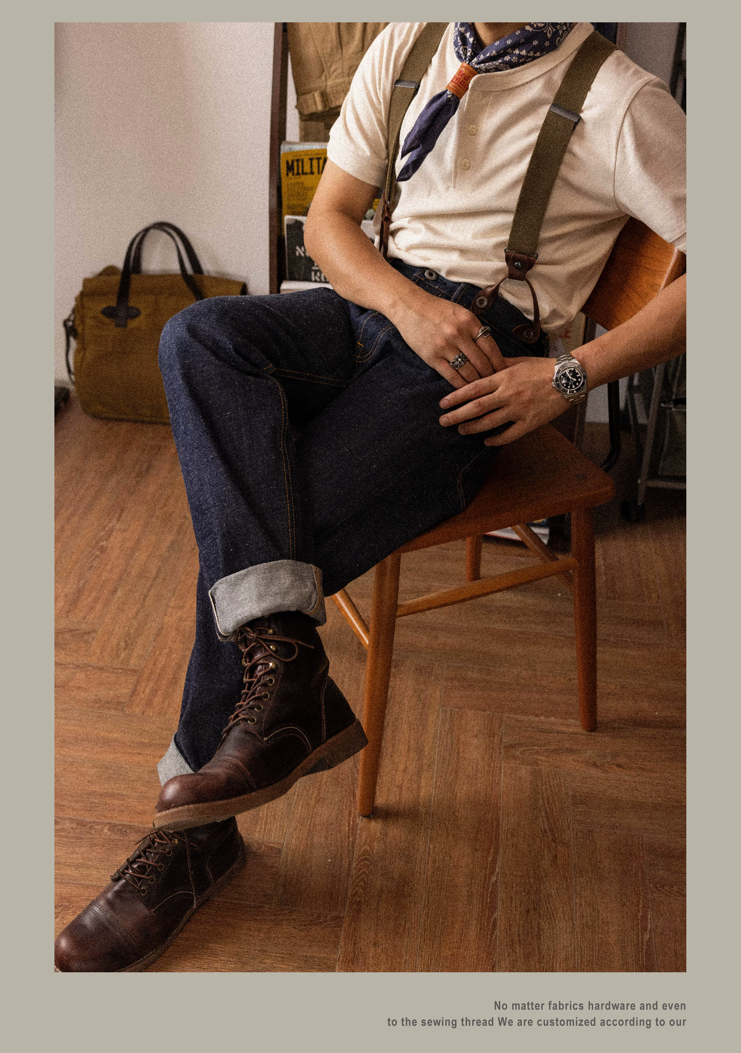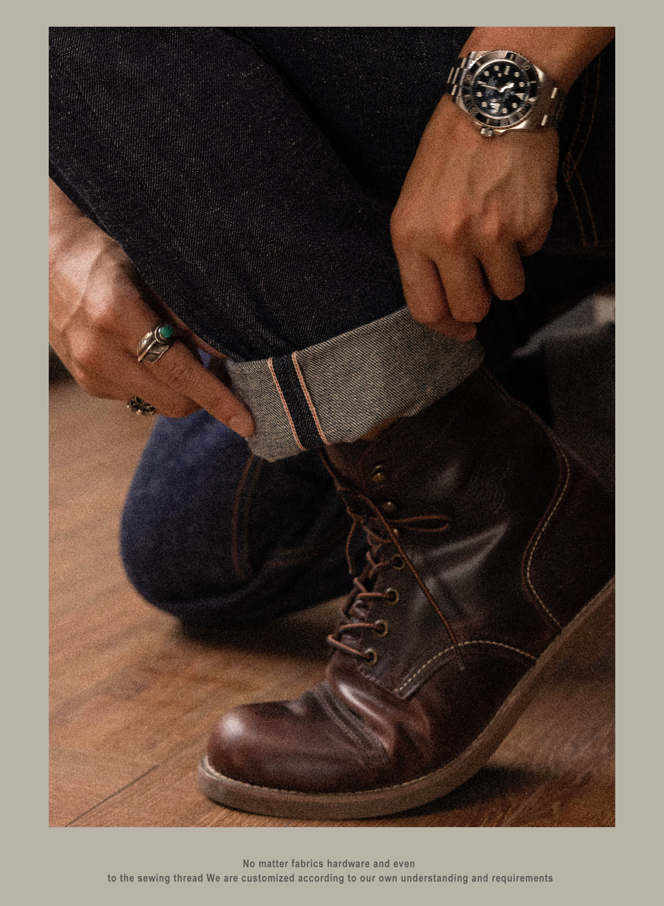 У нас есть фабрика по производству джинсовOem / odm услуга доступнаОптовая продажа/Прямая поставка приветствуетсяВысокий подъем14 унций хлопчатобумажная тканьНе вымытый/не вымытый100% окрашенная индигоПатч из коровьей кожиYKK Медные Кнопки и заклепкиПрямой кройПрошитый подол с цепочкойСварные швыЛатунная пряжкаКнопка FlyМодель 182 см и 75 кг, размер 33