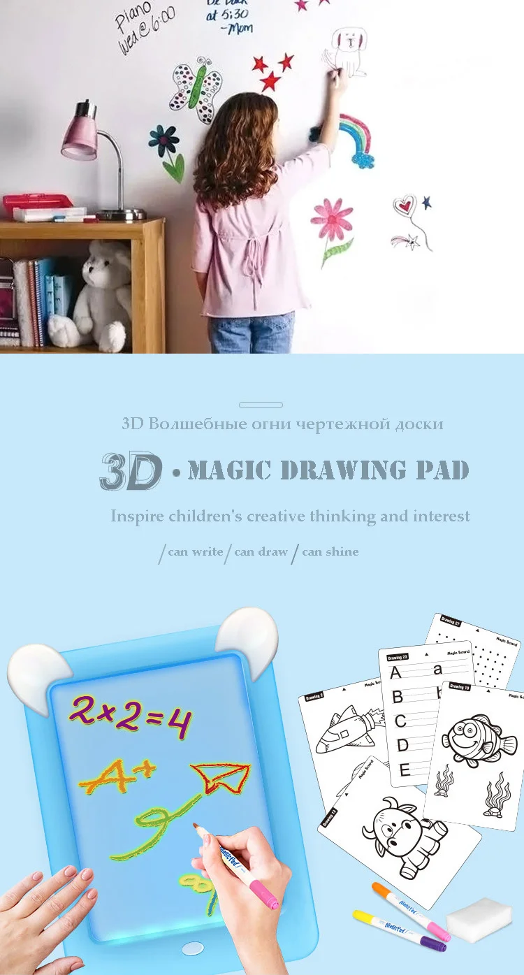 Подушка для рисования 3d магический коврик для рисования светодиодный светильник в виде планшета доска для письма головоломка для детей развитие мозга