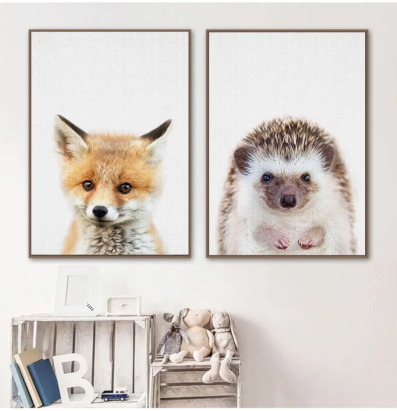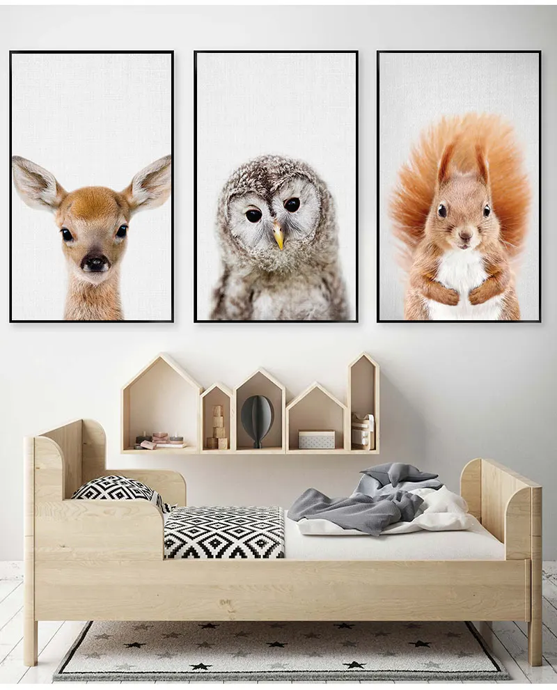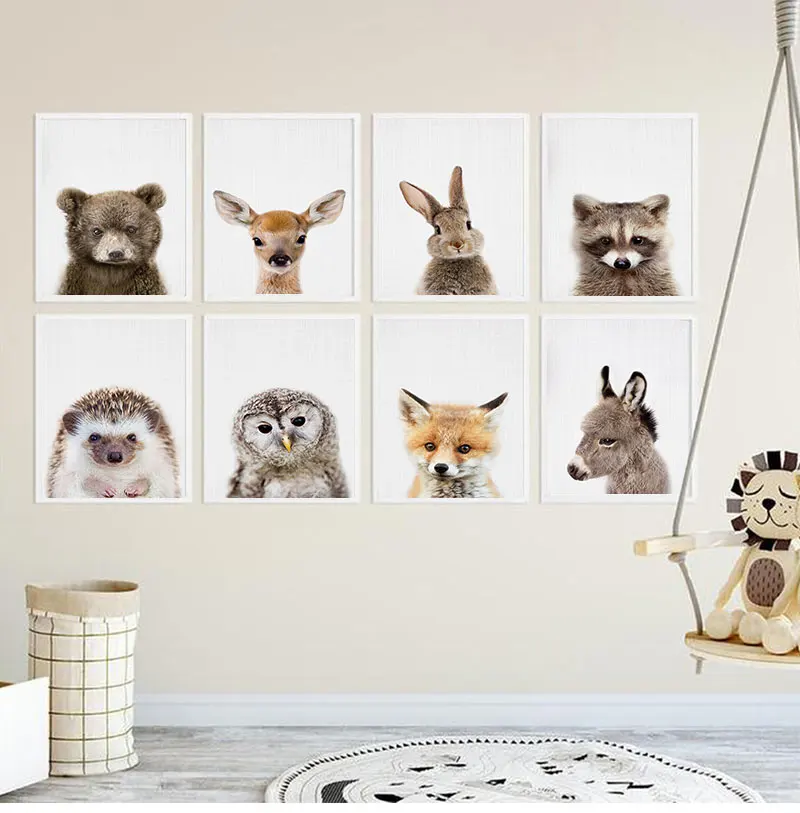 Картина с лесными животными в скандинавском стиле, декор для детской спальни, жираф, кролик, слон, холст, Детская фотография на стену