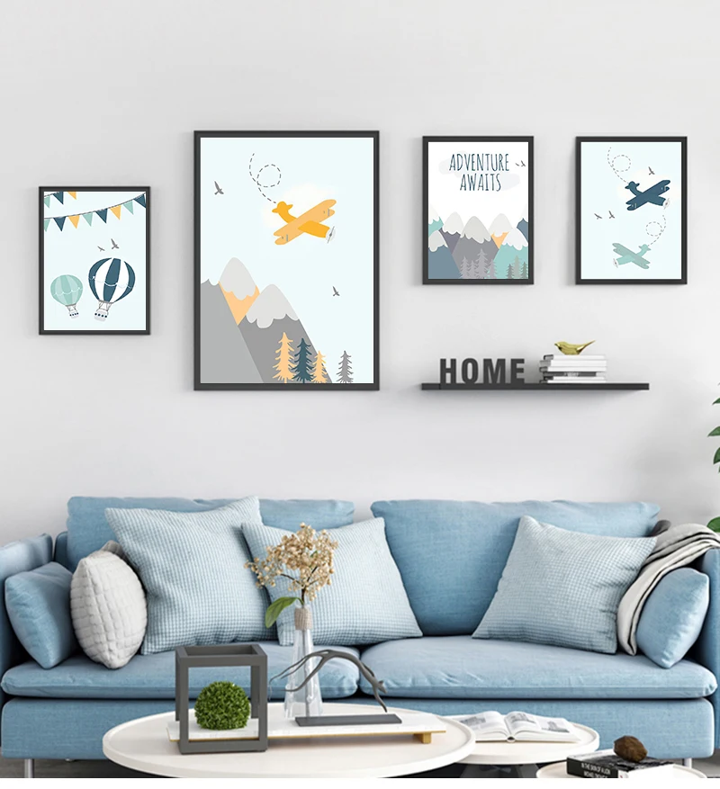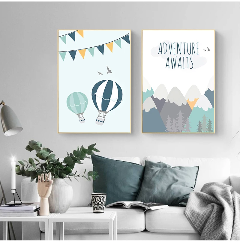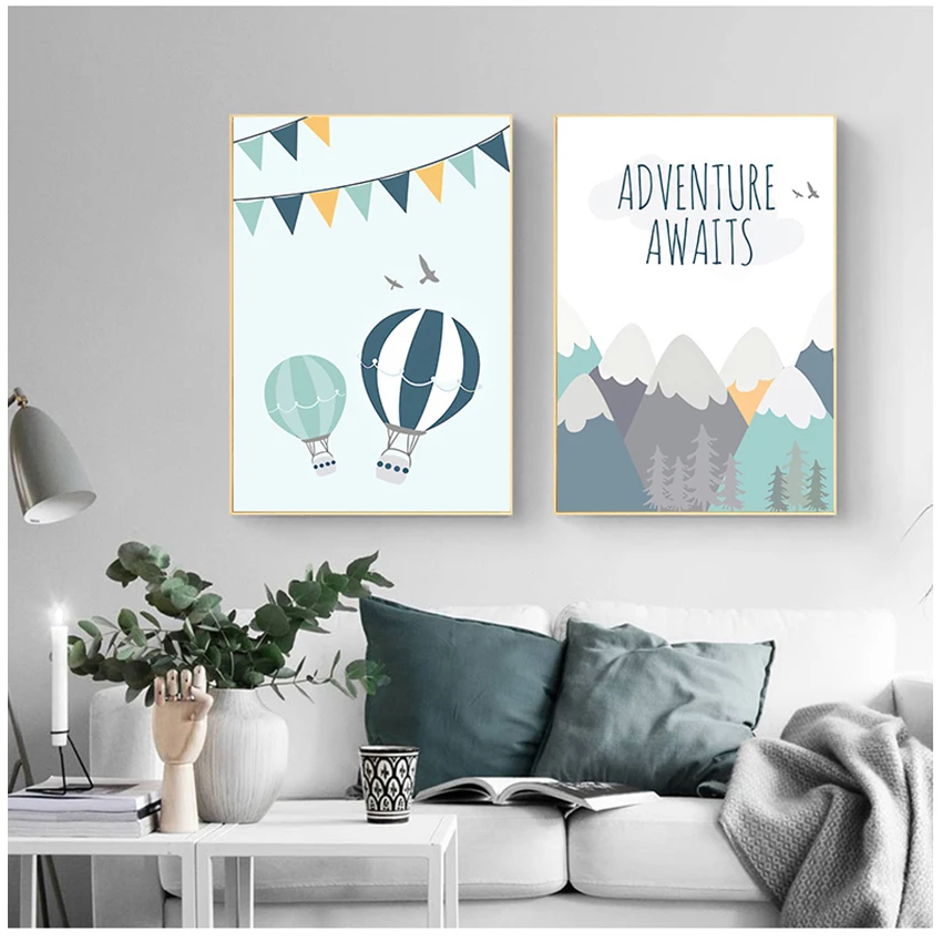 Картина на холсте в скандинавском стиле, декоративное изображение для детской комнаты, приключения, цитата, постер для детской комнаты, мультяшный настенный рисунок с изображением горы, самолета