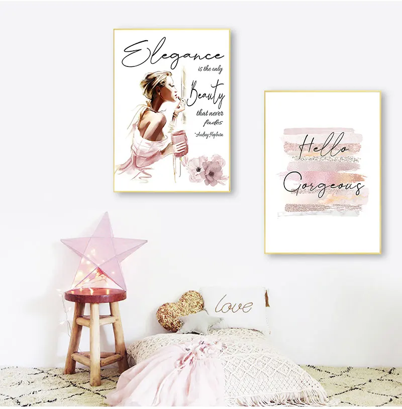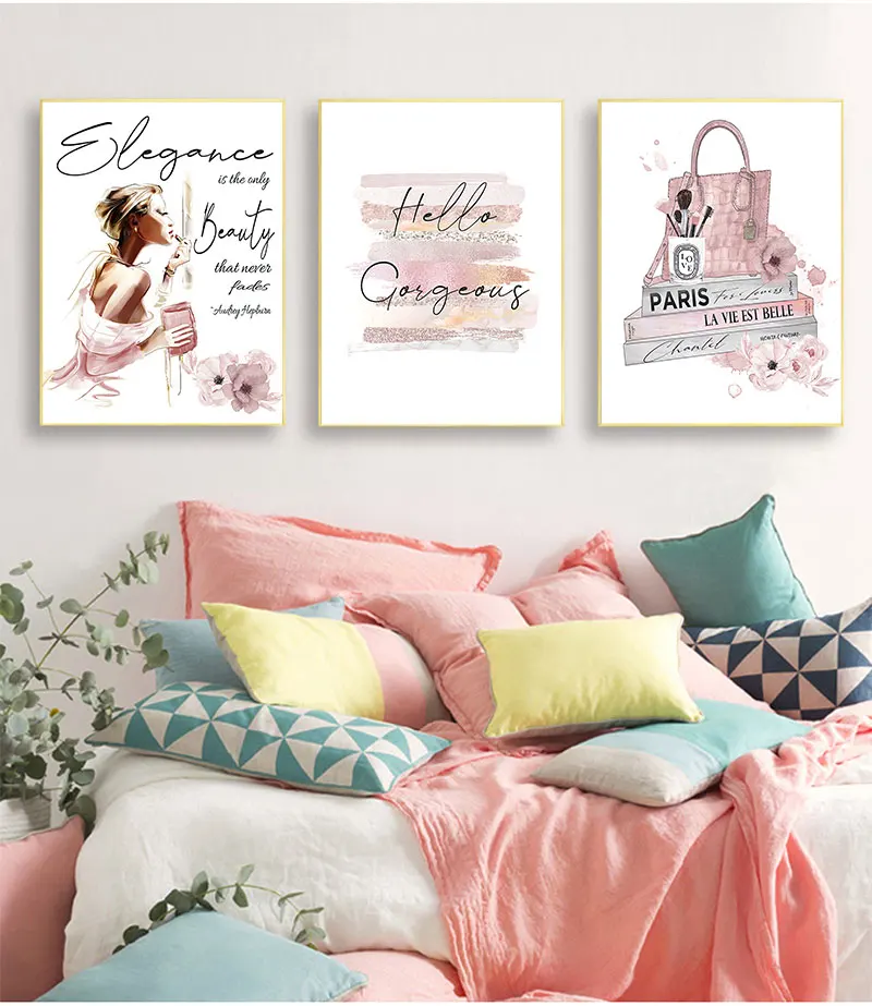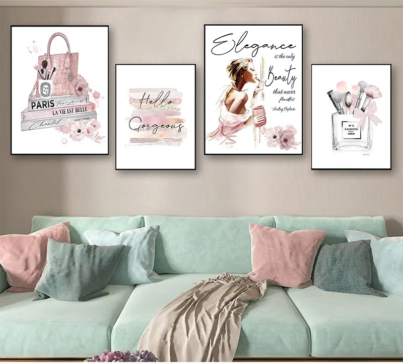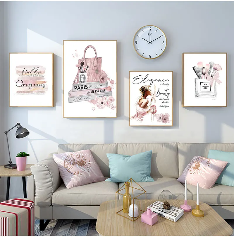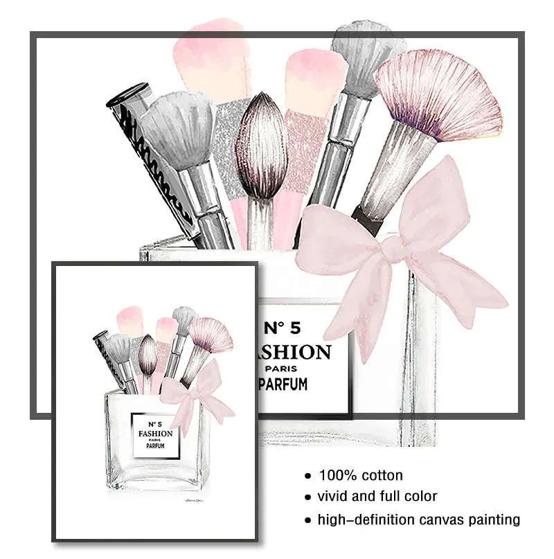 Картина розовая парфюмерная Настенная картина Декор для комнаты девочки модный плакат кисти для макияжа Красивая Настенная картина модные книги печать холст