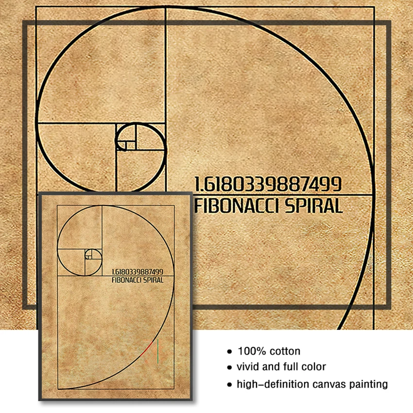 Винтажная Печать схемы подарок идея научное украшение спираль Фибоначчи запатентованная настенная Картина на холсте Золотое соотношение постеры и