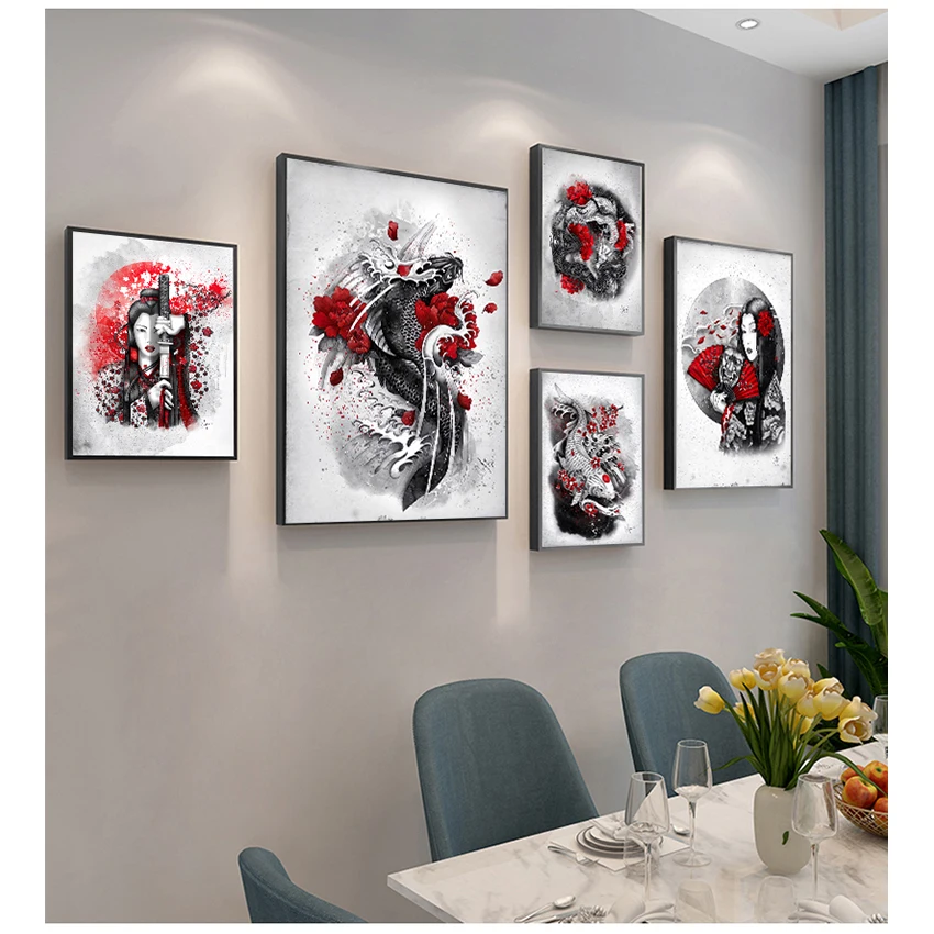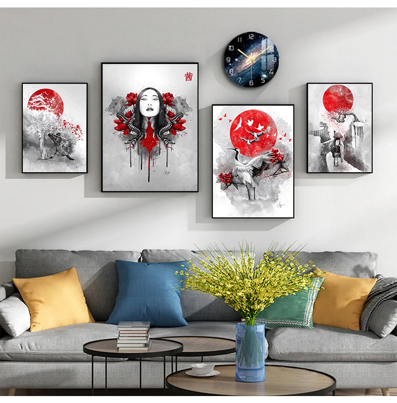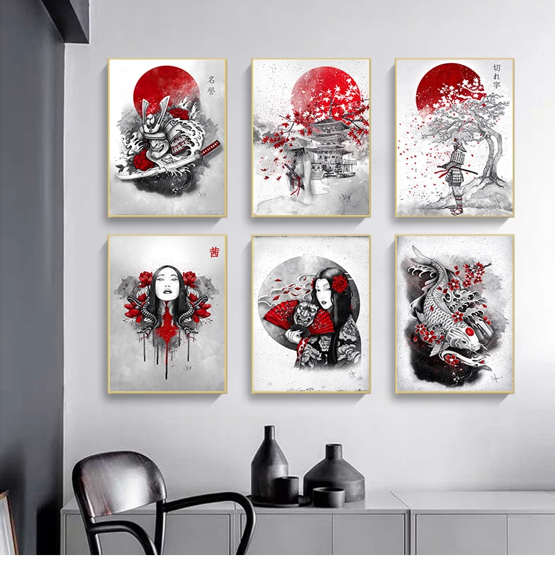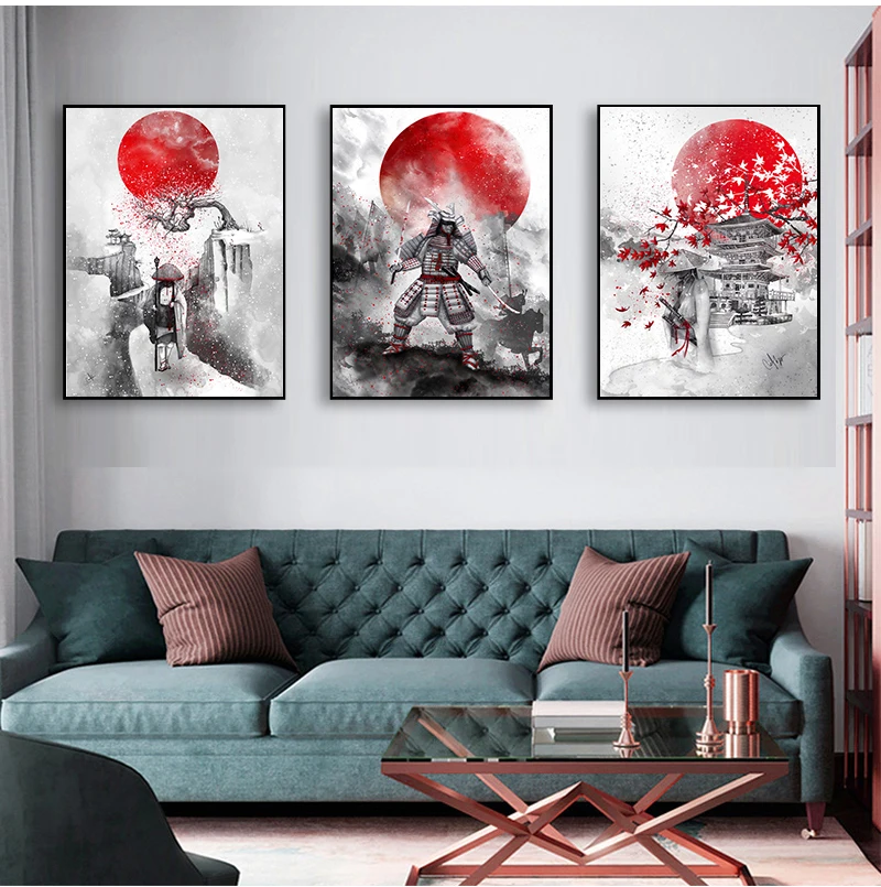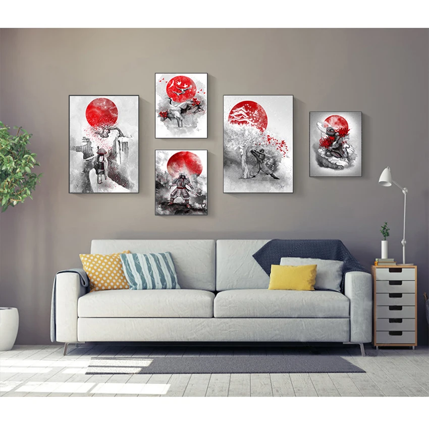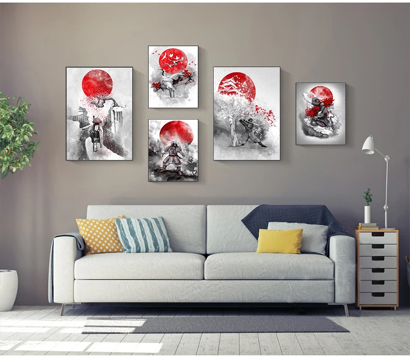 Картина на стену, картины для гостиной, плакаты на стену, Горячие японские принты Zen Ink Bonsa Bushido Samurai Kanji, художественное полотно с маслом