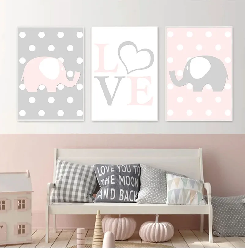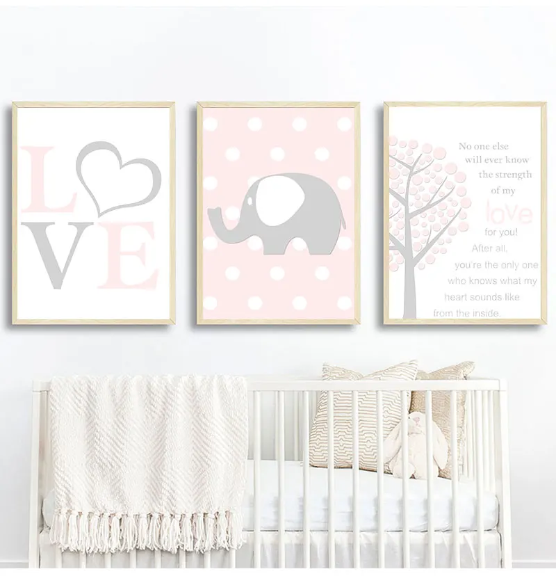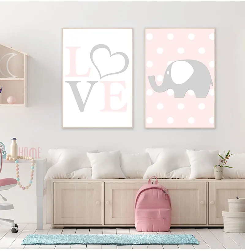 Декоративная картина, украшение для детской комнаты в скандинавском стиле, настенное украшение для детской комнаты, рисунок на холсте со слоном, Постер любви, простая картина