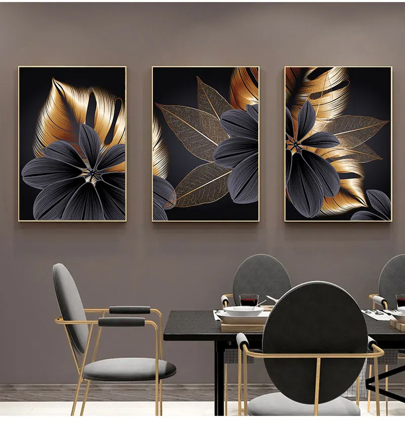 Картина для декора гостиной в скандинавском стиле, настенный постер на холсте с изображением черных и золотых растений, Современный домашний декор, абстрактная стена