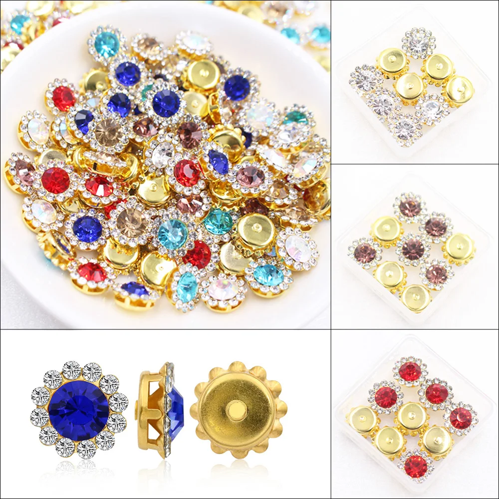 8mm-12mm Flower Claw Rhinestones Button Gold Base Glitter Crystals ...