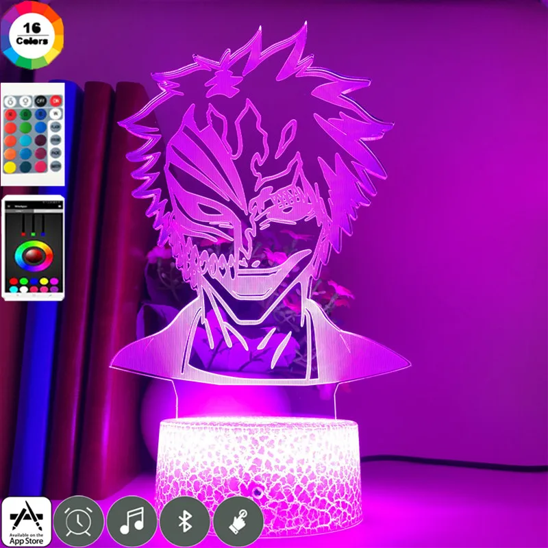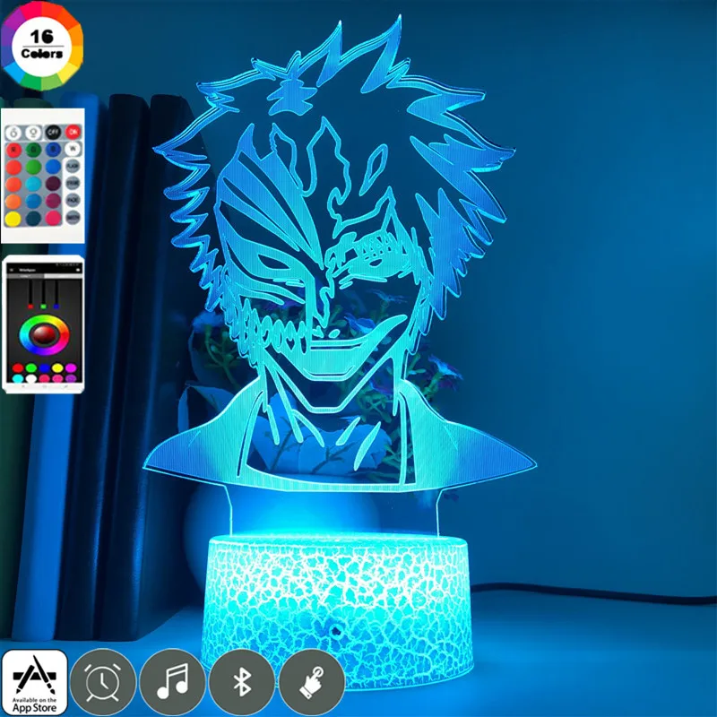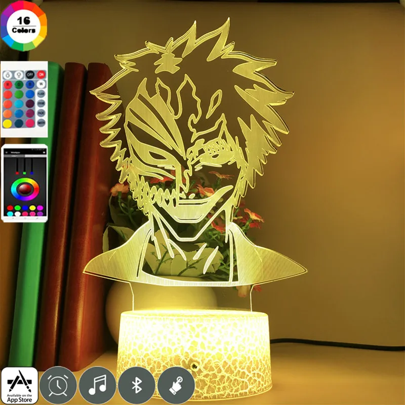Фигурка Kurosaki Ichigo, ночник, аниме, отбеливатель, светодиодный 3D Неоновый Настольный светильник для клуба, гостиницы, комнаты, атмосферный декор, светильник с управлением через приложение icon star icon star icon star icon star icon star