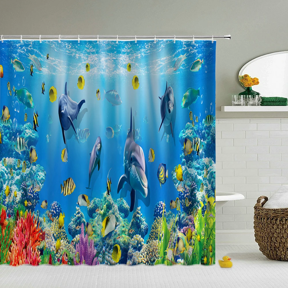 3d занавеска для ванной комнаты s морская рыба морская Медуза ракуш...