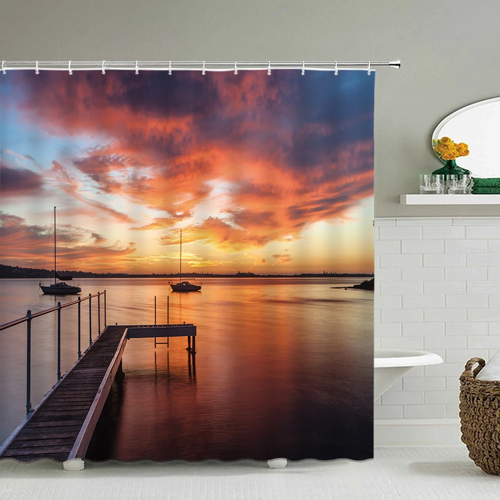 Занавеска для душа Dafield с изображением природы, озера, пейзажа, ...