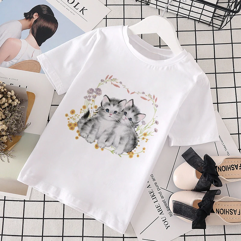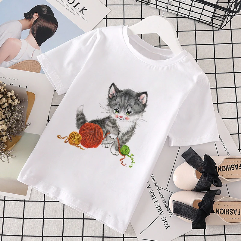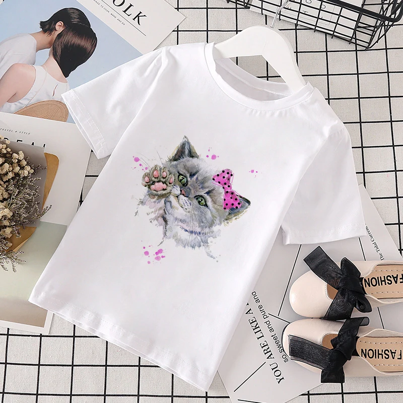 Новинка лета 2021, одежда с изображением кота и героев мультфильмов для маленьких девочек, Повседневная футболка Джокера в стиле Харадзюку, детская модная футболка, Забавный кавайный принт для мальчиков