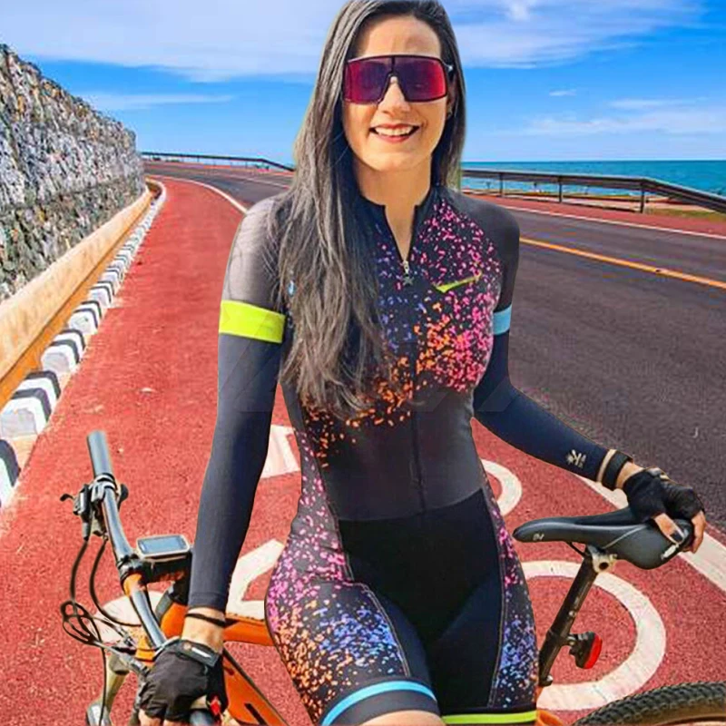 Женский трикотажный комбинезон, с длинным рукавом, для велоспорта, ...