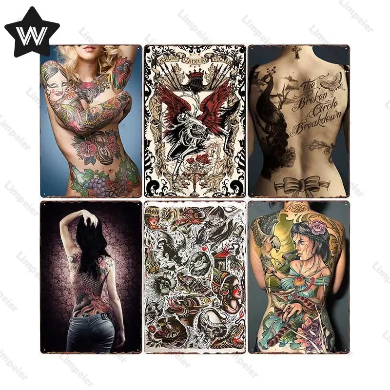 Металлический жестяной знак с татуировкой, классная девушка, Жестяная Табличка, наклейки на стену в стиле ретро, металлическая Жестяная Табличка для декора клуба