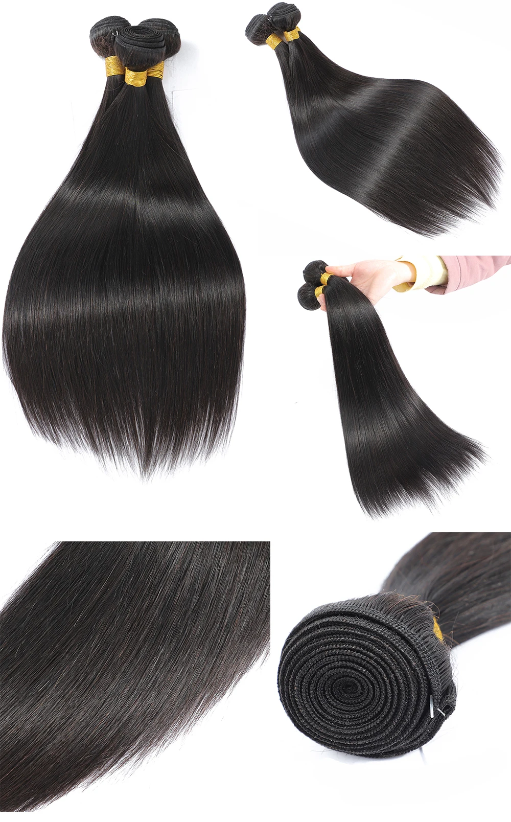 30, 40 дюймов, прямые бразильские человеческие волосы, плетение, пу...