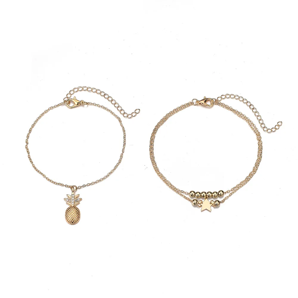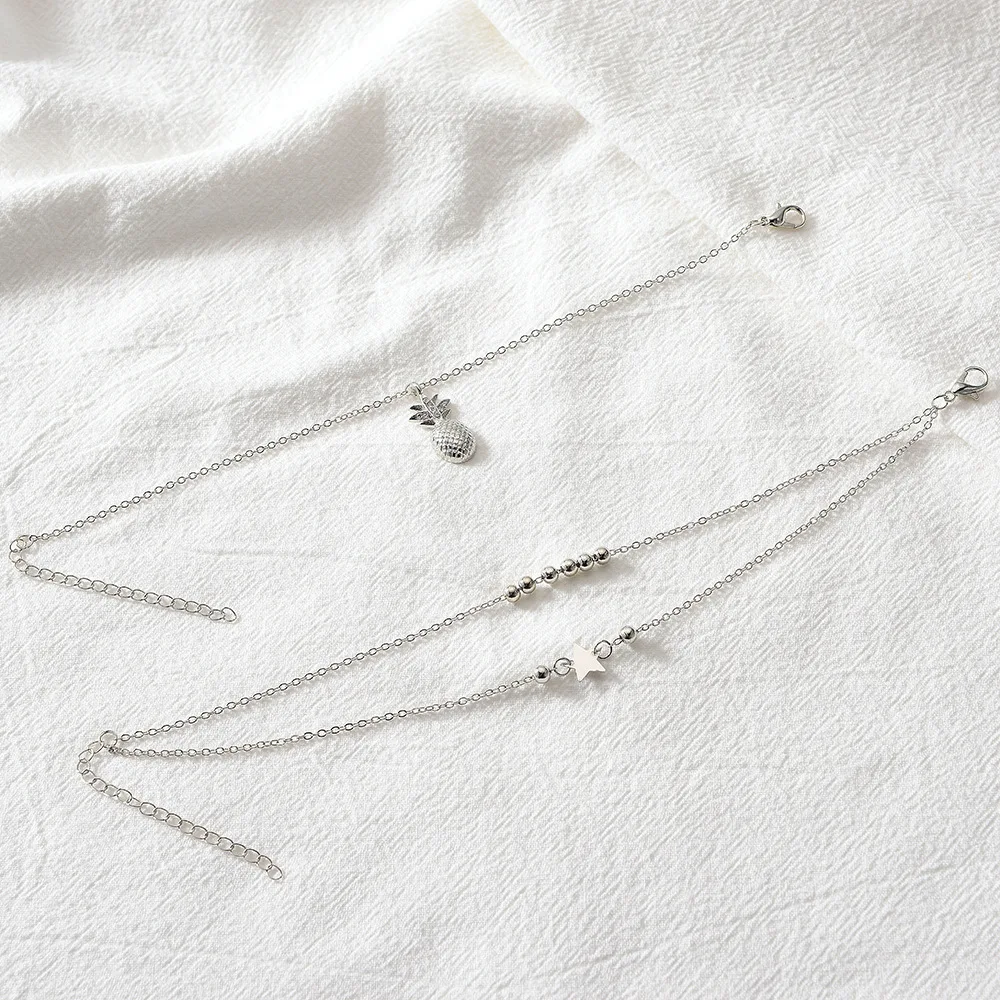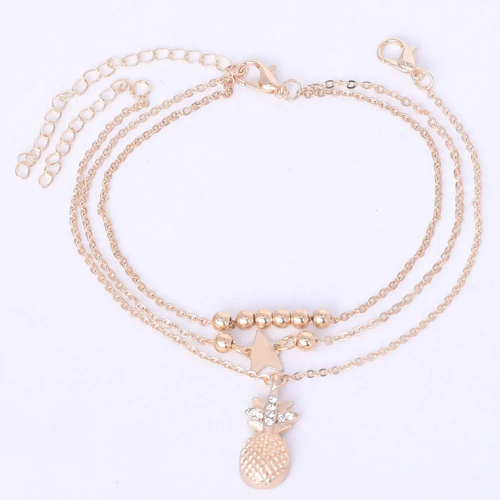 QWC Мода ананас Кулон ножной мульти-слоистые бусины звезды для женские летние сандалии для девушек, на плоской подошве, пляжные вечерние ювелирные изделия модных аксессуаров