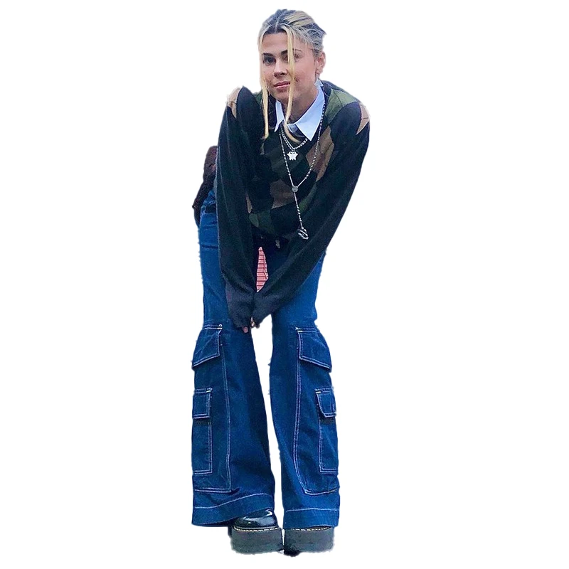 Темно-синие мешковатые джинсы, женские весенние повседневные свободные широкие брюки с высокой талией, женские винтажные прямые джинсы с большими карманами