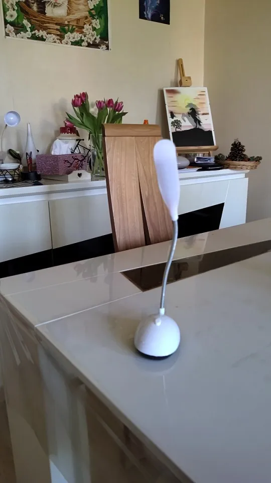 маленький,подставка пр форме компьютерной мышки,светит ярко,нужны 3 мизинчиковые батарейки