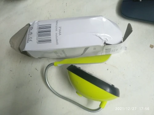 La lámpara no se ha roto de milagro, la caja venía abollada.Es pequeña y de plástico malo, lo bueno que por ahora funciona.Claro que por el precio que tiene no se puede pedir demasiado.Por lo menos no ha tardado demasiado comparado con otros vendedores
