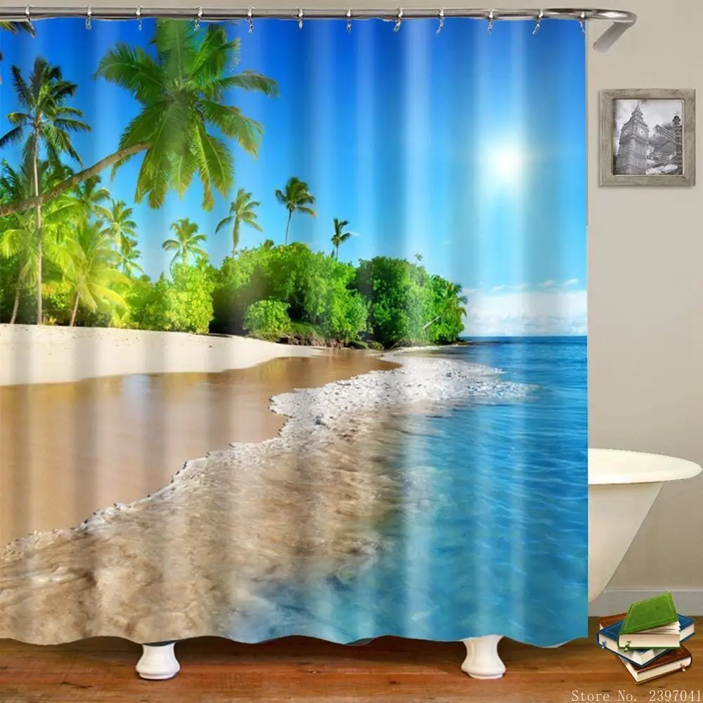 Занавеска для пляжного душа морские тропические Гавайские ракушки морские звезды песчаный тематический принт ткань Boho Декор занавески для ванной комнаты