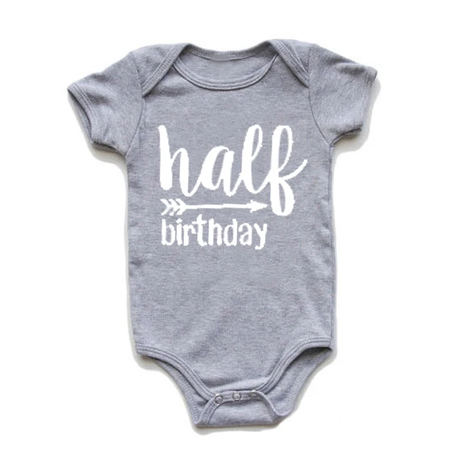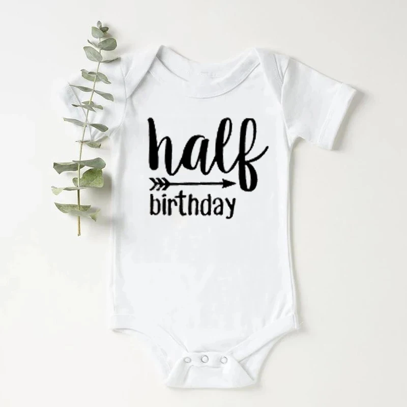 Забавное детское боди на 0-24 месяца, полубрачный хлопковый комбинезон с принтом, цельный костюм для мальчиков, наряды на половину дня рождения, пол, нейтральный, подарок для маленьких девочек