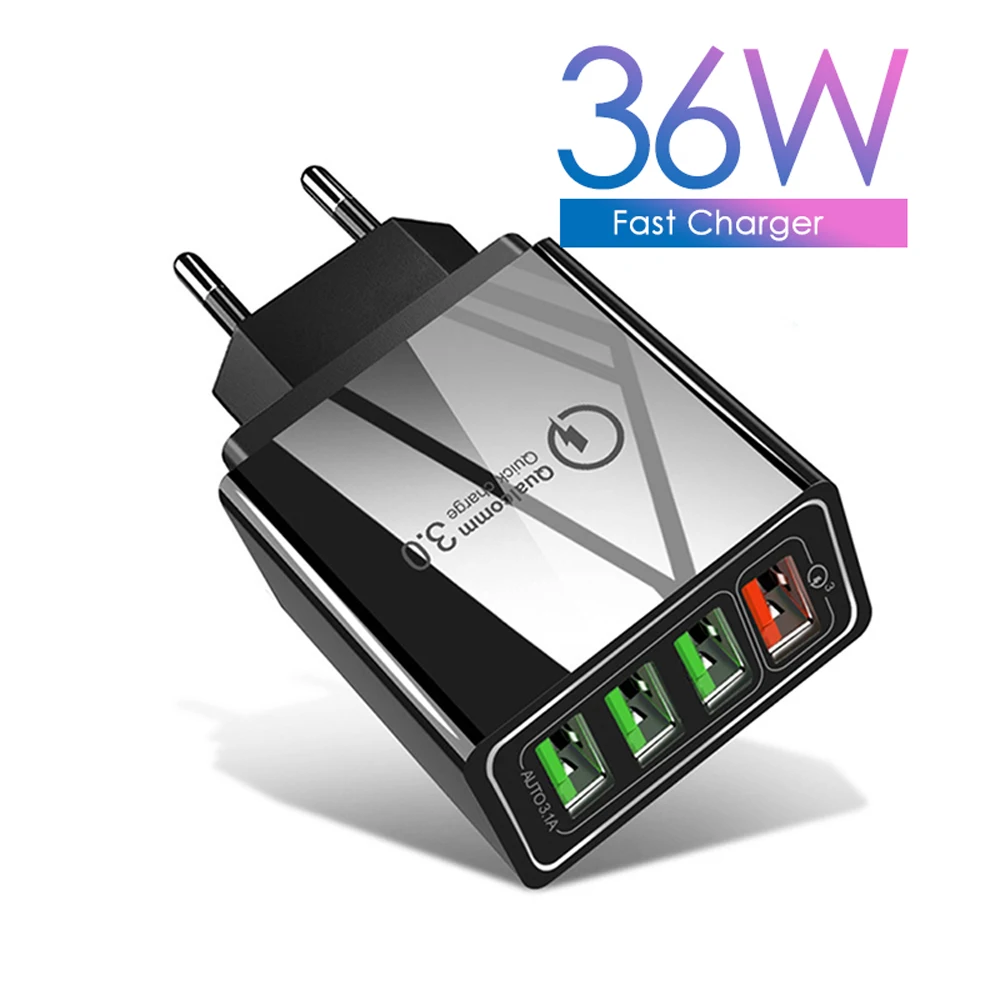 • Название продукта: 4-портовый USB зарядное устройство, зарядное устройство для путешествий* Выходная мощность: 36 Вт* Входное напряжение: AC 100-240V 50/60HZ 0.5AВыход: 5 В = 3A (макс.) 9 В = 2,4a (макс.)12V = 1.8A (макс)* Мощность вашей жизни быстрее QC3.0(USB)+ три порта 3.1A(USB2 + USB3 + USB4,3.1A макс)Интеллектуальный распределительный зарядный токМножественная защита встроенного регулятора напряжения, безопасная зарядка гарантирована* Разъем: США, ЕС, Великобритания (опционально)* Цвет: белый/черный* Параметры спецификации:Автоматическая идентификация: Автоматическая идентификация напряжения и тока на основе оборудования.Материал: PC + ABS огнестойкий и огнестойкий.
